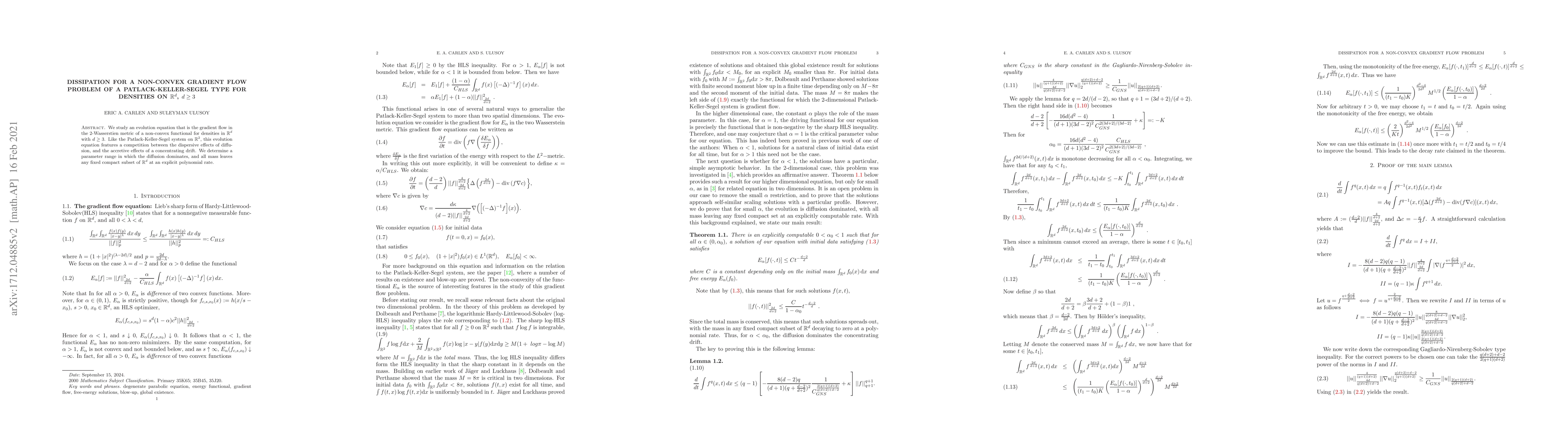 Researchers study a non-convex gradient flow equation for densities in n-dimensional space, finding that mass leaves a compact subset at an explicit polynomial rate under certain conditions.