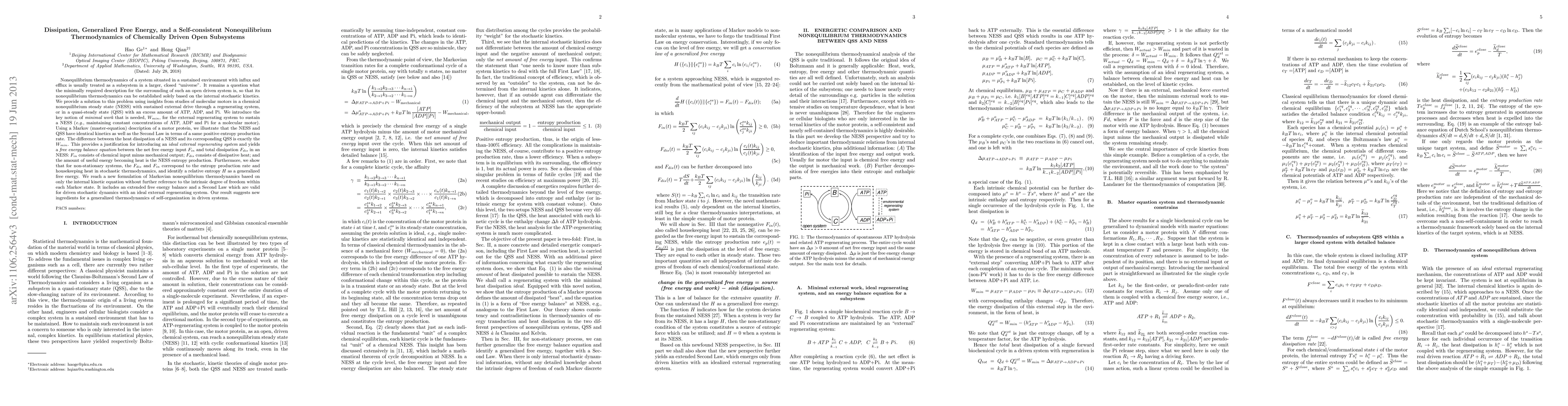 This paper proposes a self-consistent nonequilibrium thermodynamics framework for chemically driven open subsystems, introducing the concept of minimal work ($W_{min}$) required to sustain a nonequilibrium steady state (NESS). It establishes a free energy balance equation linking net free energy input and total dissipation, and identifies a relative entropy as a generalized free energy for non-stationary systems.