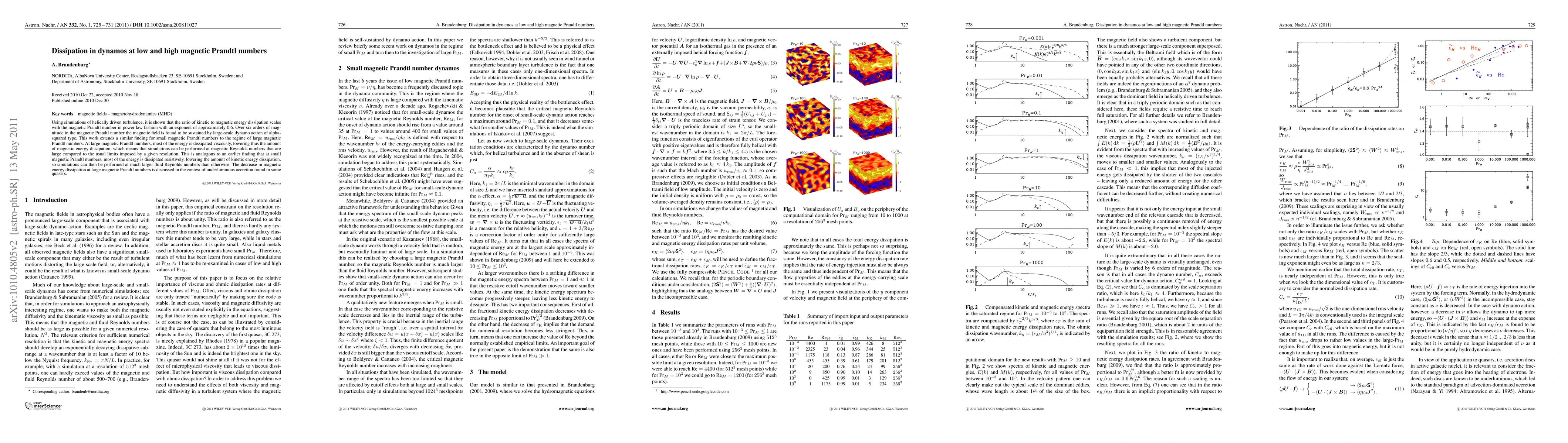 This paper demonstrates that kinetic to magnetic energy dissipation scales with the magnetic Prandtl number in a power law, showing that large-scale dynamo action sustains magnetic fields over six orders of magnitude. At high magnetic Prandtl numbers, most energy dissipation occurs viscously, allowing simulations at larger magnetic Reynolds numbers.