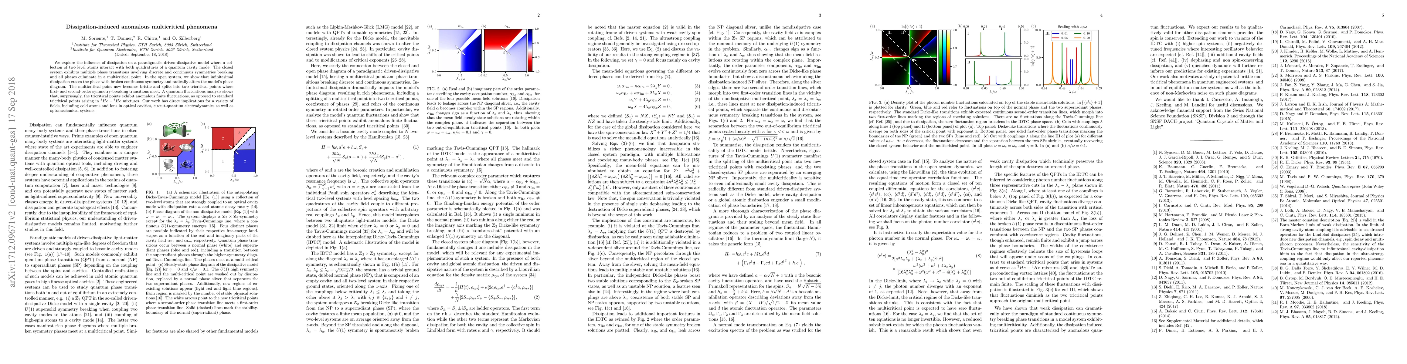 We explore the influence of dissipation on a paradigmatic driven-dissipative model where a collection of two level atoms interact with both quadratures of a quantum cavity mode. The closed system exhibits multiple phase transitions involving discrete and continuous symmetries breaking and all phases culminate in a multicritical point. In the open system, we show that infinitesimal dissipation erases the phase with broken continuous symmetry and radically alters the model's phase diagram. The multicritical point now becomes brittle and splits into two tricritical points where first- and second-order symmetry-breaking transitions meet. A quantum fluctuations analysis shows that, surprisingly, the tricritical points exhibit anomalous finite fluctuations, as opposed to standard tricritical points arising in $^3He-\text{}^4He$ mixtures. Our work has direct implications for a variety of fields, including cold atoms and ions in optical cavities, circuit-quantum electrodynamics as well as optomechanical systems.