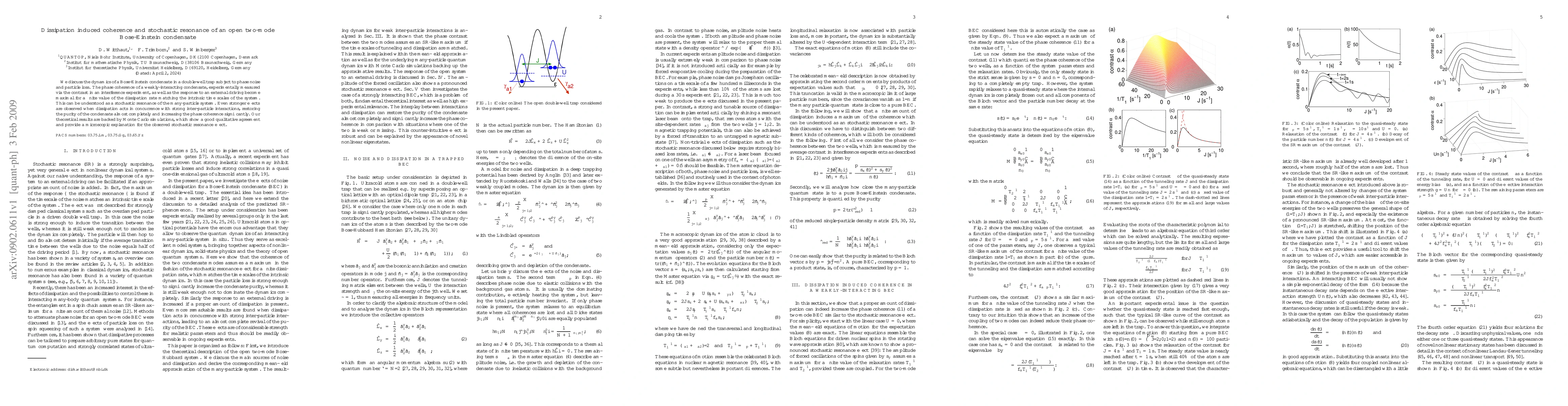 This paper investigates the dynamics of a two-mode Bose-Einstein condensate in a double-well trap under phase noise and particle loss, revealing maximal coherence and stochastic resonance at a specific dissipation rate. The study finds that strong inter-particle interactions can restore condensate purity and significantly enhance phase coherence, supported by Monte Carlo simulations.