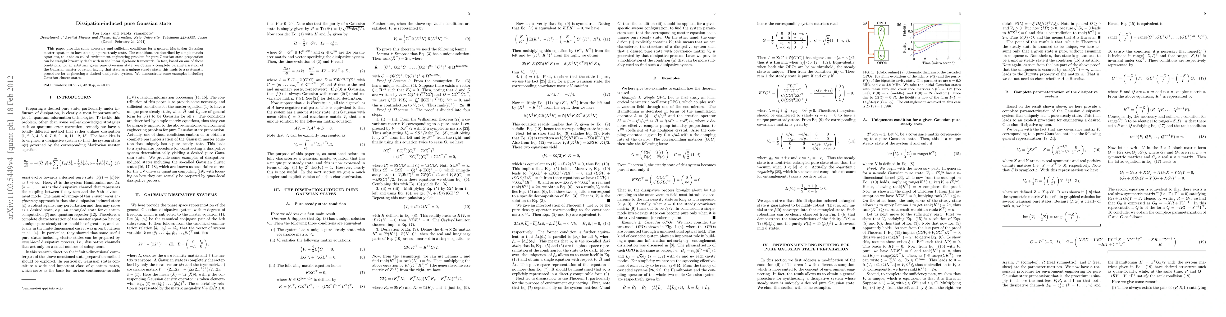 This paper establishes necessary and sufficient conditions for a Markovian Gaussian master equation to have a unique pure steady state, providing a linear algebraic framework for environment engineering to prepare pure Gaussian states. It also presents a systematic procedure for engineering desired dissipative systems, demonstrated through examples including Gaussian cluster states.