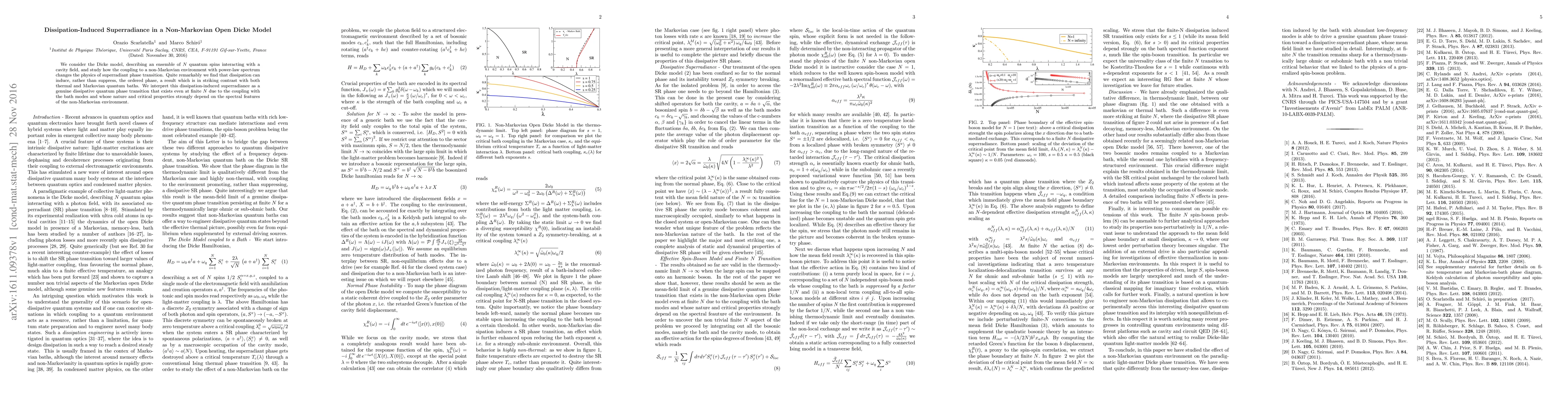 This paper investigates the Dicke model in a non-Markovian environment, finding that dissipation can induce superradiance and a quantum phase transition, contrary to results in Markovian or thermal environments. The unique critical properties arise due to the environment's power-law spectrum.