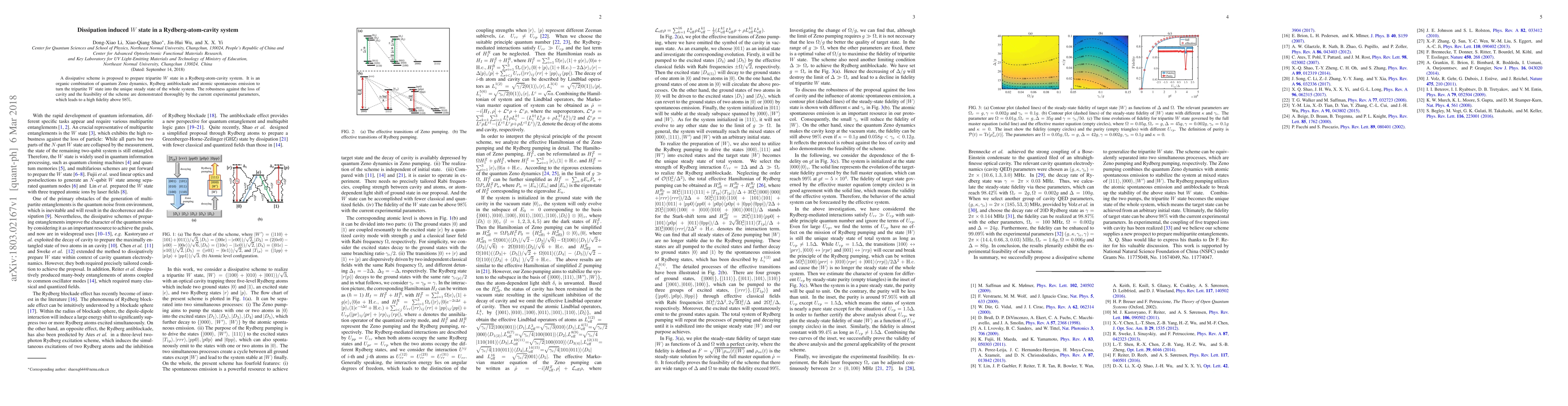 This paper proposes a dissipative scheme to prepare a tripartite $W$ state in a Rydberg-atom-cavity system, combining quantum Zeno dynamics, Rydberg antiblockade, and atomic spontaneous emission. The scheme demonstrates high fidelity above $98\%$ and robustness against cavity loss, making it feasible for practical implementation.