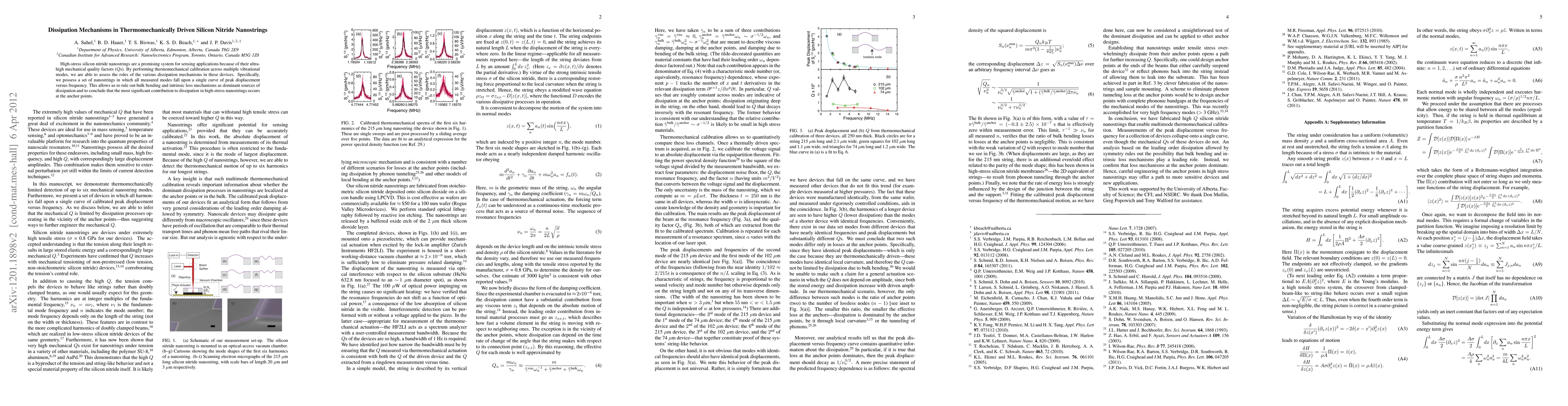 This study investigates dissipation mechanisms in high-stress silicon nitride nanostrings, revealing that intrinsic loss and bulk bending are not the primary sources of dissipation. Instead, the most significant dissipation occurs at the anchor points, as evidenced by a consistent curve of peak displacement versus frequency across multiple vibrational modes.
