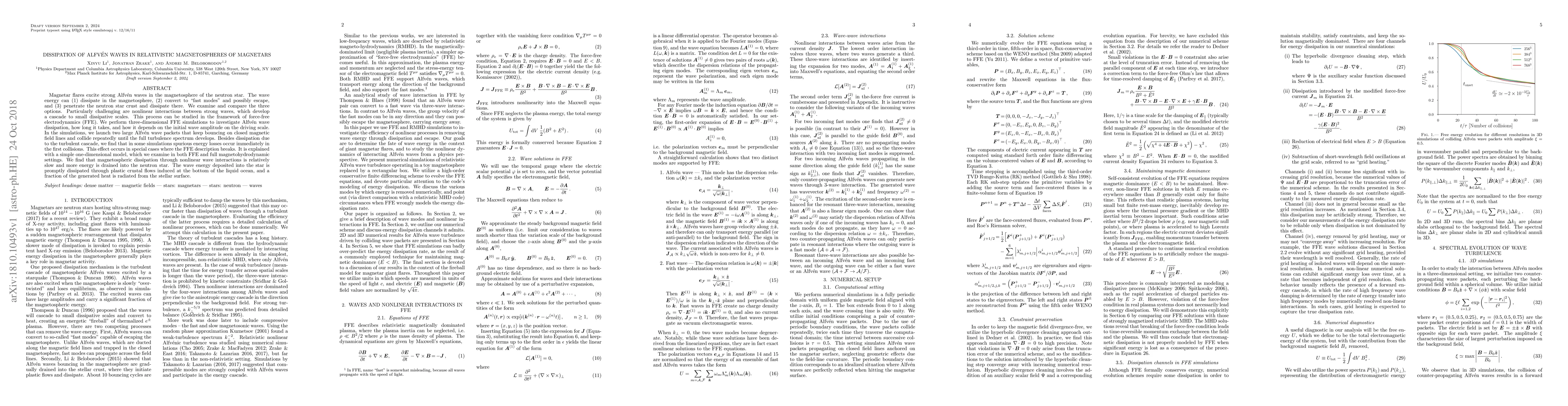 The research investigates Alfvén wave dissipation in magnetar magnetospheres, comparing magnetospheric, 'fast mode' escape, and crustal dissipation. Using 3D force-free electrodynamics simulations, it finds that magnetospheric dissipation via nonlinear wave interactions is slow, with more energy drained into the neutron star. Wave energy is dissipated through crustal plastic flows and some heat radiates from the surface.