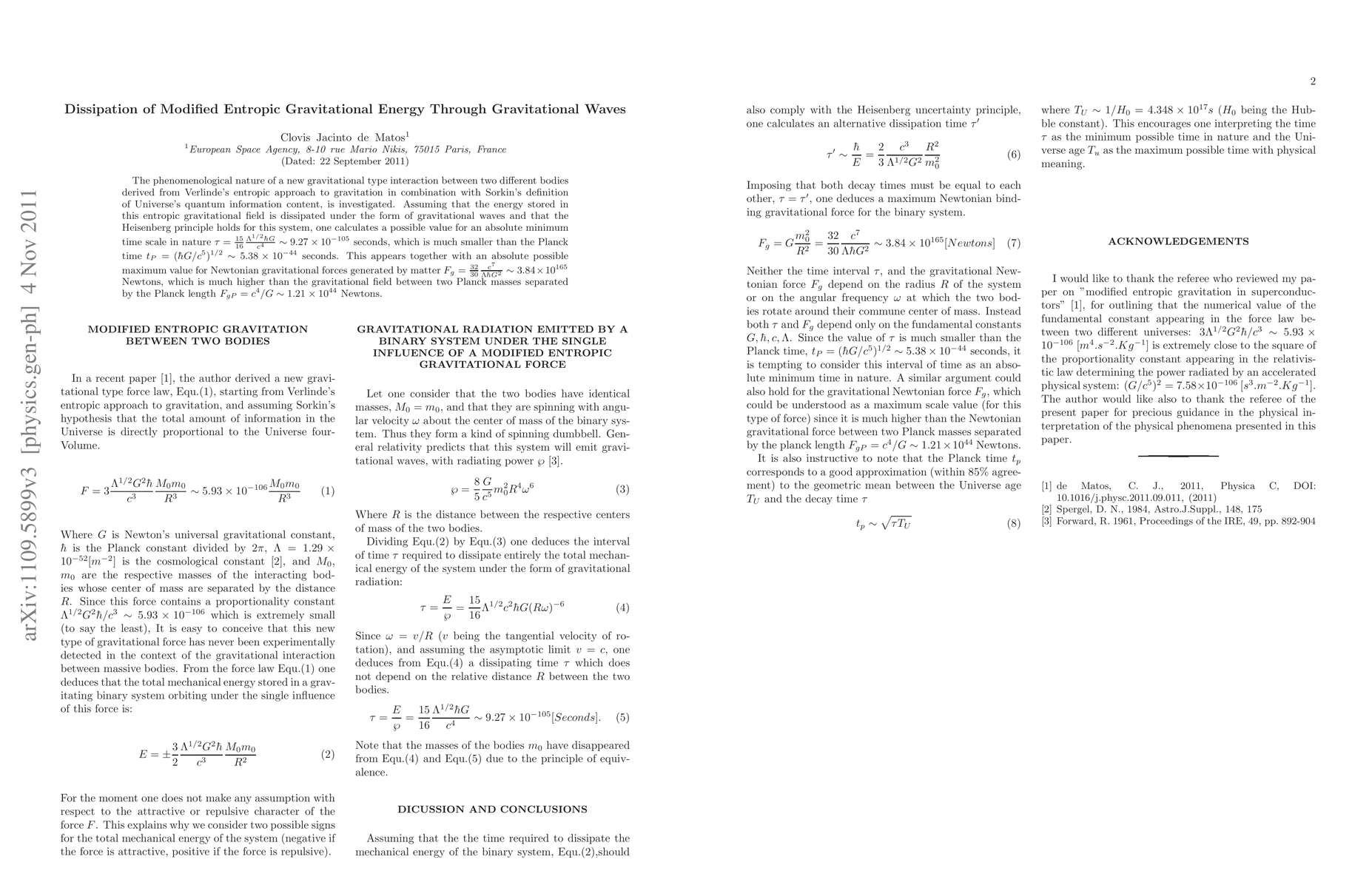 The phenomenological nature of a new gravitational type interaction between two different bodies derived from Verlinde's entropic approach to gravitation in combination with Sorkin's definition of Universe's quantum information content, is investigated. Assuming that the energy stored in this entropic gravitational field is dissipated under the form of gravitational waves and that the Heisenberg principle holds for this system, one calculates a possible value for an absolute minimum time scale in nature $\tau=15/16 \frac{\Lambda^{1/2}\hbar G}{c^4}\sim9.27\times10^{-105}$ seconds, which is much smaller than the Planck time $t_{P}=(\hbar G/c^5)^{1/2}\sim 5.38\times10^{-44}$ seconds. This appears together with an absolute possible maximum value for Newtonian gravitational forces generated by matter $F_g=32/30\frac{c^7}{\Lambda \hbar G^2}\sim 3.84\times 10^{165}$ Newtons, which is much higher than the gravitational field between two Planck masses separated by the Planck length $F_{gP}=c^4/G\sim1.21\times10^{44}$ Newtons.