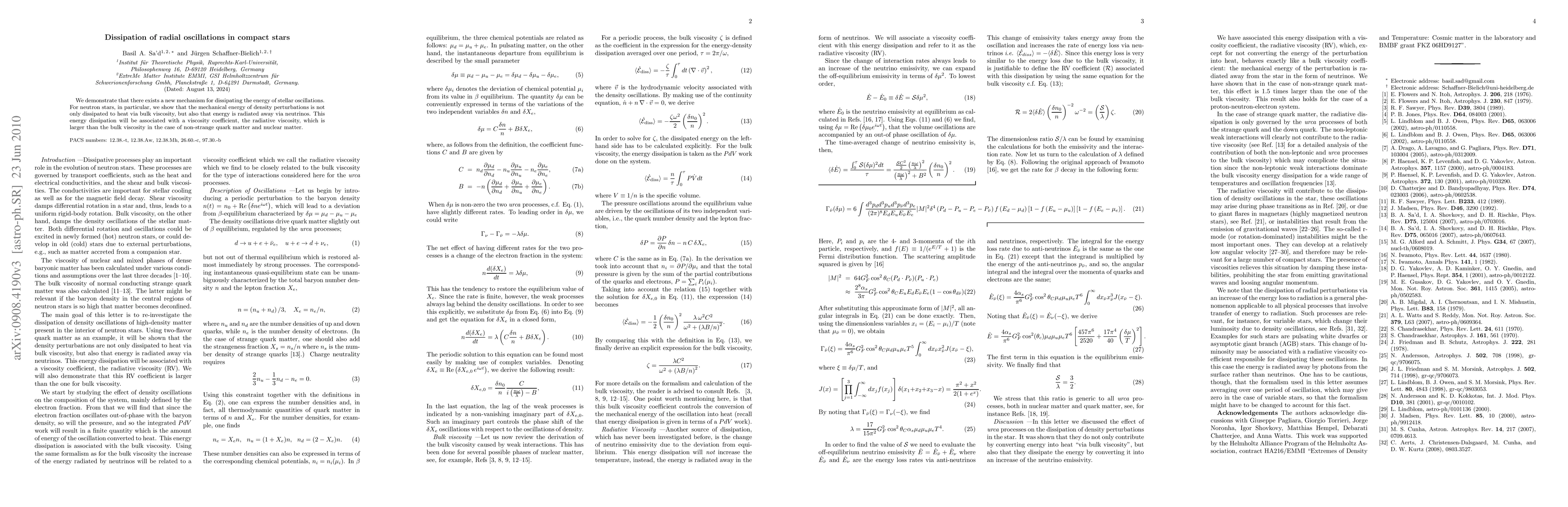 We demonstrate that there exists a new mechanism for dissipating the energy of stellar oscillations. For neutron stars, in particular, we show that the mechanical energy of density perturbations is not only dissipated to heat via bulk viscosity, but also that energy is radiated away via neutrinos. This energy dissipation will be associated with a viscosity coefficient, the radiative viscosity, which is larger than the bulk viscosity in the case of non-strange quark matter and nuclear matter.