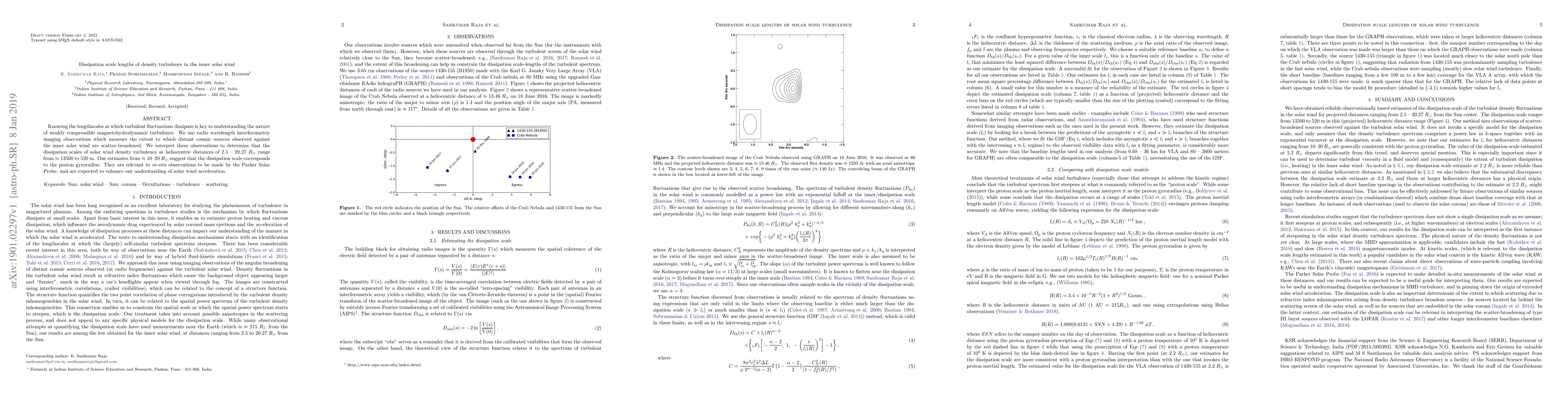 Knowing the lengthscales at which turbulent fluctuations dissipate is key to understanding the nature of weakly compressible magnetohydrodynamic turbulence. We use radio wavelength interferometric imaging observations which measure the extent to which distant cosmic sources observed against the inner solar wind are scatter-broadened. We interpret these observations to determine that the dissipation scales of solar wind density turbulence at heliocentric distances of 2.5 -- 20.27 $R_{\odot}$ range from $\approx$ 13500 to 520 m. Our estimates from $\approx$ 10--20 $R_{\odot}$ suggest that the dissipation scale corresponds to the proton gyroradius. They are relevant to in-situ observations to be made by the Parker Solar Probe, and are expected to enhance our understanding of solar wind acceleration.
