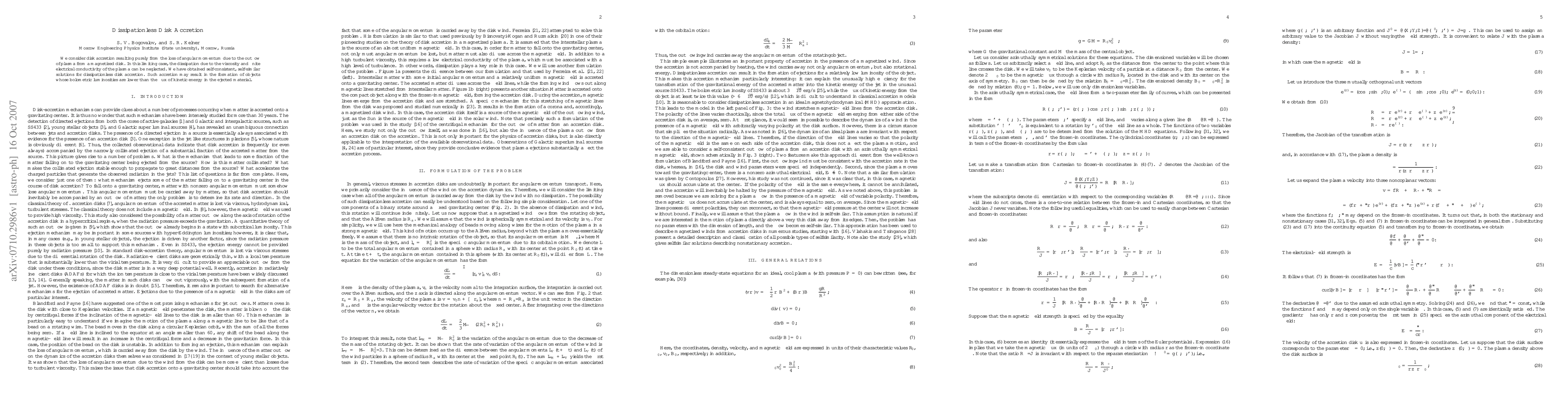 This paper explores disk accretion driven solely by angular momentum loss via plasma outflow from a magnetized disk, neglecting dissipation from viscosity and conductivity. The authors present self-consistent, self-similar solutions for this dissipationless accretion, which may lead to objects with lower bolometric luminosities than the kinetic energy flux of the ejected material.