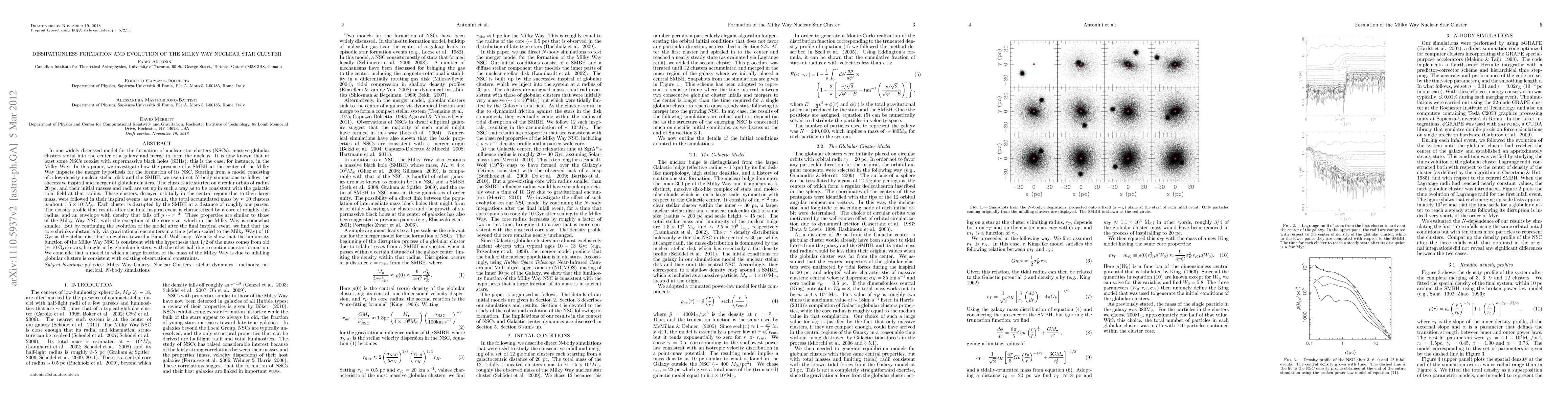 Abridged: In one widely discussed model for the formation of nuclear star clusters (NSCs), massive globular clusters spiral into the center of a galaxy and merge to form the nucleus. It is now known that at least some NSCs coexist with supermassive black holes (SBHs); this is the case, for instance, in the Milky Way (MW). In this paper, we investigate how the presence of a SMBH at the center of the MW impacts the merger hypothesis for the formation of its NSC. Starting from a model consisting of a low-density nuclear stellar disk and the SMBH, we use N-body simulations to follow the successive inspiral and merger of globular clusters. The clusters are started on circular orbits of radius 20 pc, and their initial masses and radii are set up in such a way as to be consistent with the galactic tidal field at that radius. The total accumulated mass by ~10 clusters is about 1.5x10^7 Solar masses. Each cluster is disrupted by the SMBH at a distance of roughly one parsec. The density profile that results after the final inspiral event is characterized by a core of roughly this radius, and an envelope with density that falls off as 1/r^2. These properties are similar to those of the MW NSC, with the exception of the core size, which in the MW is a little smaller. But by continuing the evolution of the model after the final inspiral event, we find that the core shrinks substantially via gravitational encounters in a time (when scaled to the MW) of 10 Gyr as the stellar distribution evolves toward a Bahcall-Wolf cusp. We also show that the luminosity function of the MW NSC is consistent with the hypothesis that a large fraction of the mass comes from (~10Gyr) old stars, brought in by globular clusters. We conclude that a model in which a large fraction of the mass of the MW NSC arose from infalling globular clusters is consistent with existing observational constraints.