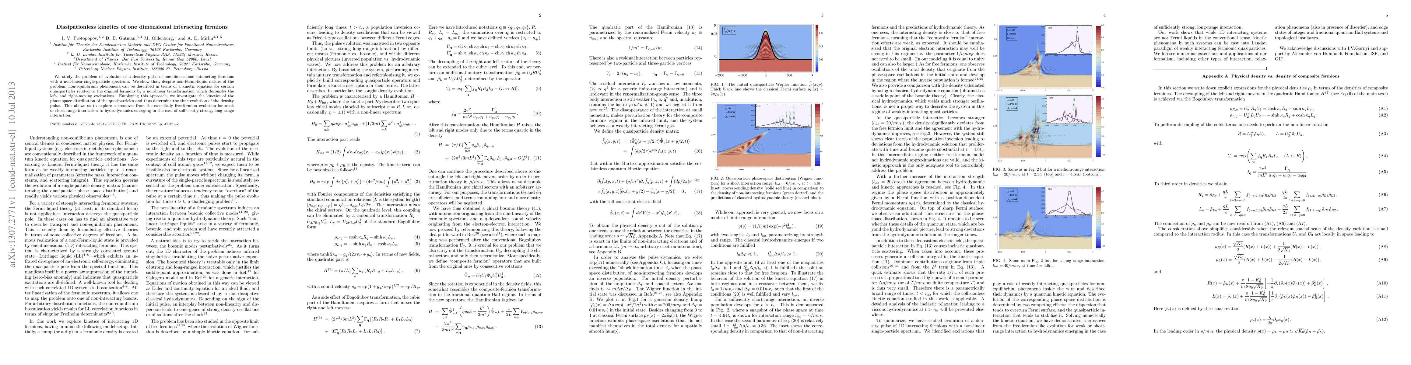 Researchers study how a density pulse of one-dimensional fermions evolves over time, finding a way to describe their behavior using a kinetic equation that separates left- and right-moving excitations, revealing a crossover from free-like evolution to hydrodynamics under strong interactions.