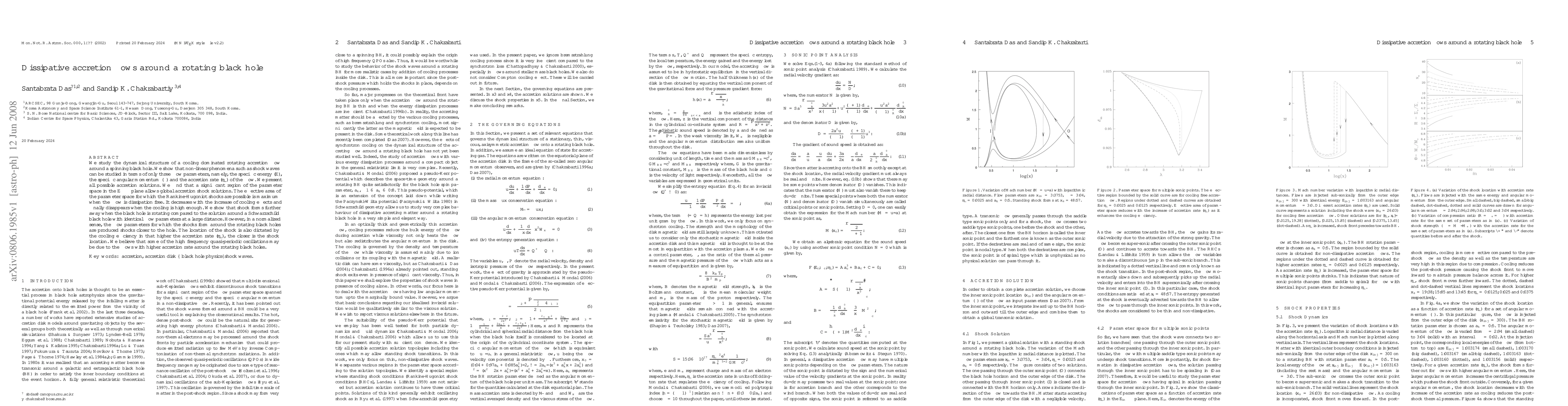 This paper investigates the structure of rotating accretion flows around spinning black holes, showing that shock waves can be described using three key parameters: specific energy, specific angular momentum, and accretion rate. It finds that shock formations are more likely in regions with lower cooling, and they occur closer to the black hole when it is rotating compared to a non-rotating black hole.