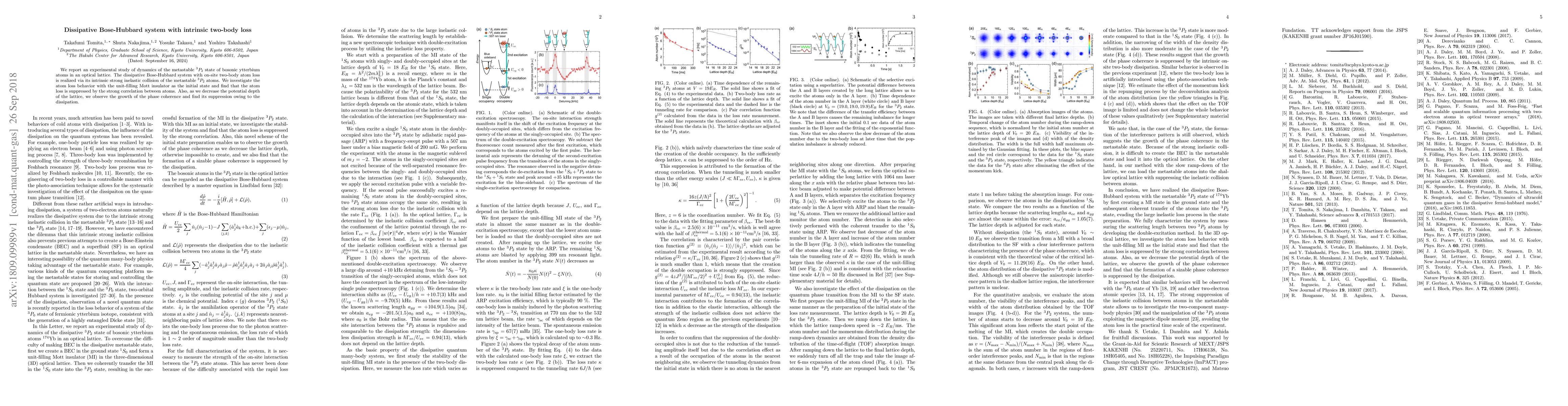 Researchers experimentally study a dissipative Bose-Hubbard system with intrinsic two-body loss in ytterbium atoms, finding that strong correlation between atoms suppresses atom loss and phase coherence grows as the lattice potential depth decreases.
