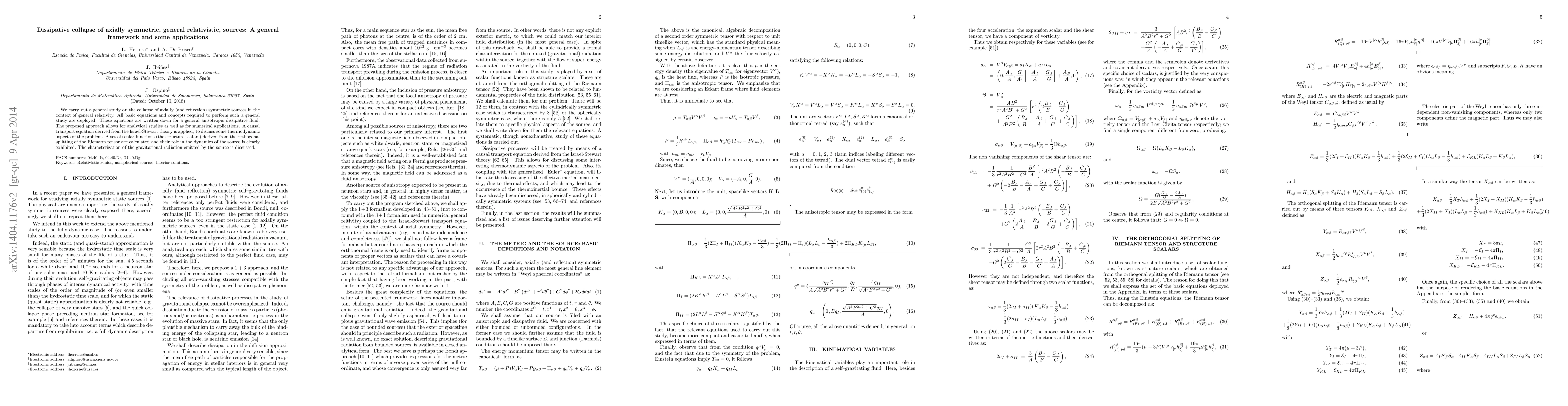 This paper develops a comprehensive framework for studying the dissipative collapse of axially symmetric sources in general relativity, employing equations for anisotropic fluids and the Israel-Stewart theory. It analyzes gravitational radiation and the dynamics of the source using structure scalars derived from the Riemann tensor.