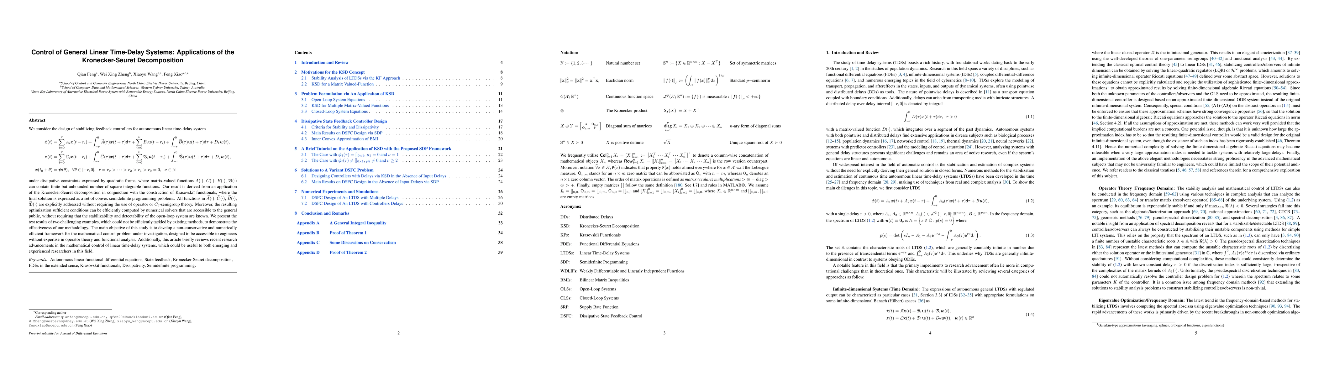 The control and observation of autonomous linear time delay systems (LTDSs) remain a challenging problem when considering an unlimited number of pointwise and general distributed delays (DDs) with dissipative constraints. Existing solutions are hindered by theoretical limitations, numerical obstacles, or an inability to handle the complexities of DD kernels. In this paper, we present a unified framework based on the equivalent decomposition-approximation (EDA) technique that we recently developed for the analysis of general DDs. The framework can simultaneously address two separated control problems using the Krasovski\u{\i} functional (KF) approach, where all DDs can contain an unlimited number of square-integrable functions. We demonstrate in detail how the EDA technique can factorize and approximate any kernel function simultaneously without introducing conservatism. This approach also enables us to construct a complete-type KF, where its integral kernels can include any number of weakly differentiable and linearly independent functions, supported by the utilization of novel integral inequalities derived from the least-squares principle. The solution to each synthesis problem comprises two theorems accompanied by an iterative algorithm, which can be utilized as a single package to compute controller gains, eliminating the need for nonlinear solvers. We test several challenging examples, which cannot be addressed by existing methods, to demonstrate the effectiveness of our methodology. The paper also reviews some of the latest results on the analysis of LTDSs, which may serve as a useful reference for both students and experienced researchers in related fields.