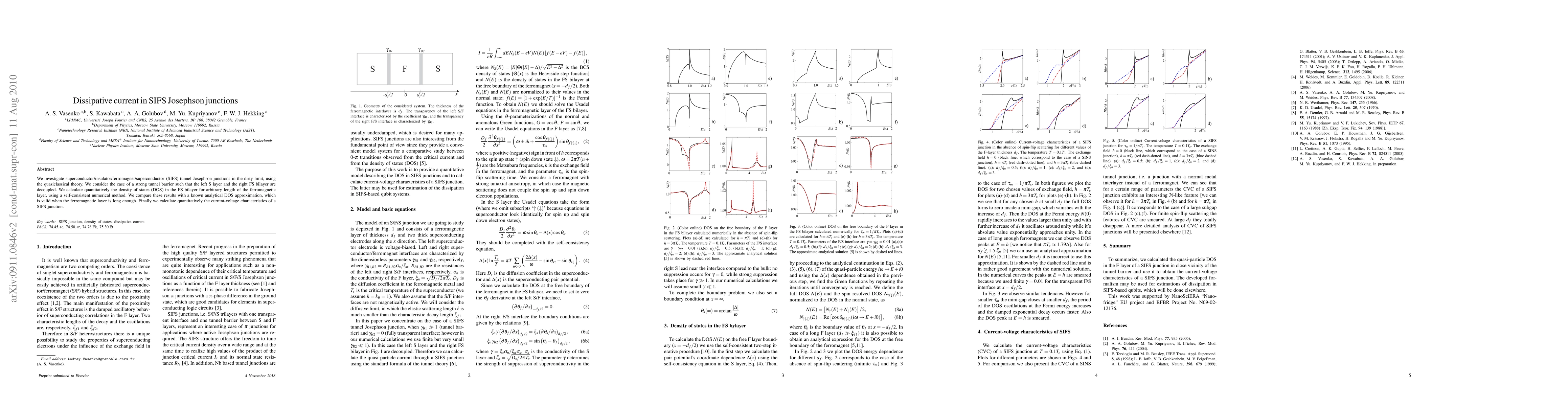 This research is important for understanding the behavior of SIFS Josephson junctions, which are relevant for both applied and fundamental studies. The model can be used for estimating dissipation in SIFS-based qubit systems, contributing to advancements in superconducting device applications.
