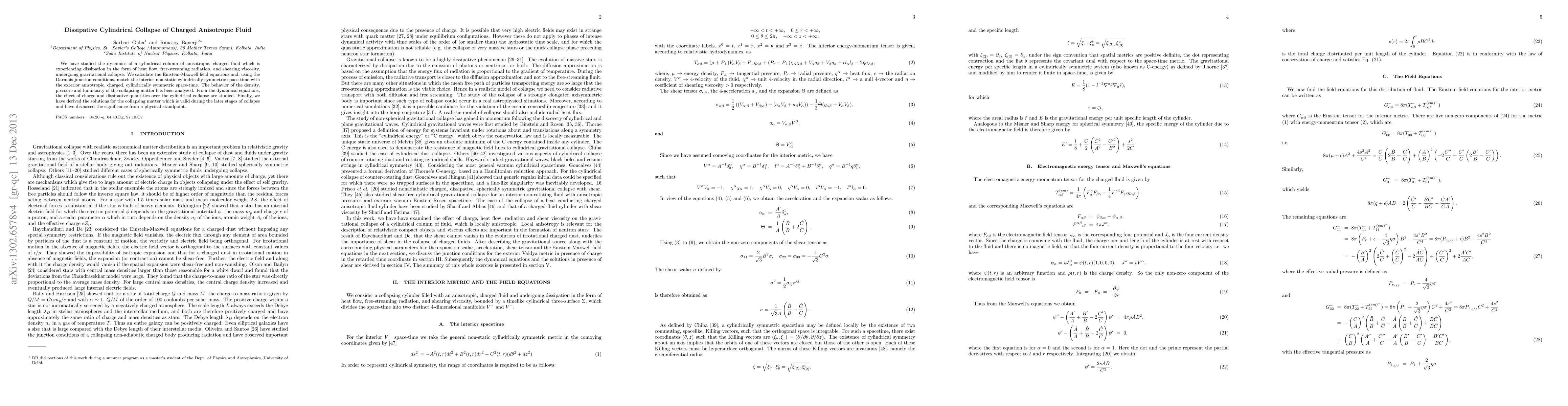 This paper investigates the gravitational collapse dynamics of a cylindrical column of charged anisotropic fluid experiencing heat flow, radiation, and shearing viscosity. It matches the interior and exterior space-time solutions using Einstein-Maxwell equations and Darmois junction conditions, analyzing the effects of charge and dissipative forces on the collapse and deriving solutions valid during the late stages of collapse.
