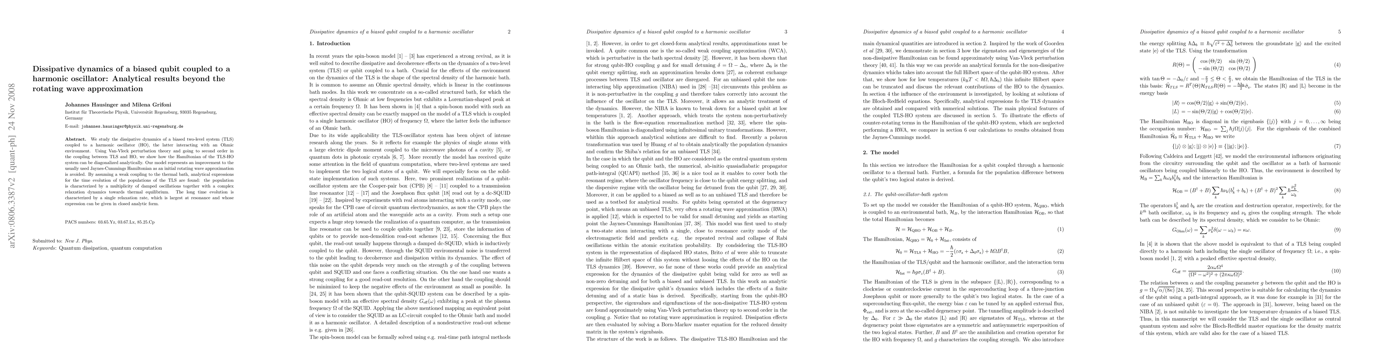 This paper presents an analytical study of the dissipative dynamics of a biased two-level system coupled to a harmonic oscillator, avoiding the rotating wave approximation. Using Van-Vleck perturbation theory, the authors derive closed-form expressions for the time evolution of the populations, revealing complex relaxation dynamics and a single relaxation rate at resonance.