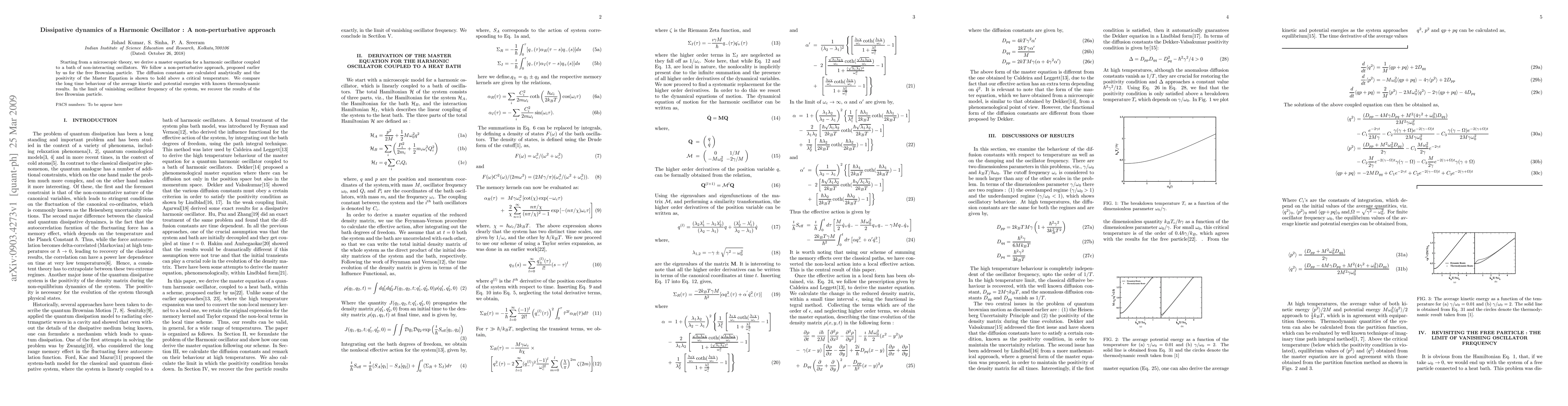 This paper derives a master equation for a harmonic oscillator coupled to a bath using a non-perturbative approach, calculating diffusion constants analytically and demonstrating the positivity of the Master Equation above a critical temperature. The study compares long-time behavior of kinetic and potential energies with thermodynamic results, and recovers Brownian particle results in the limit of low oscillator frequency.