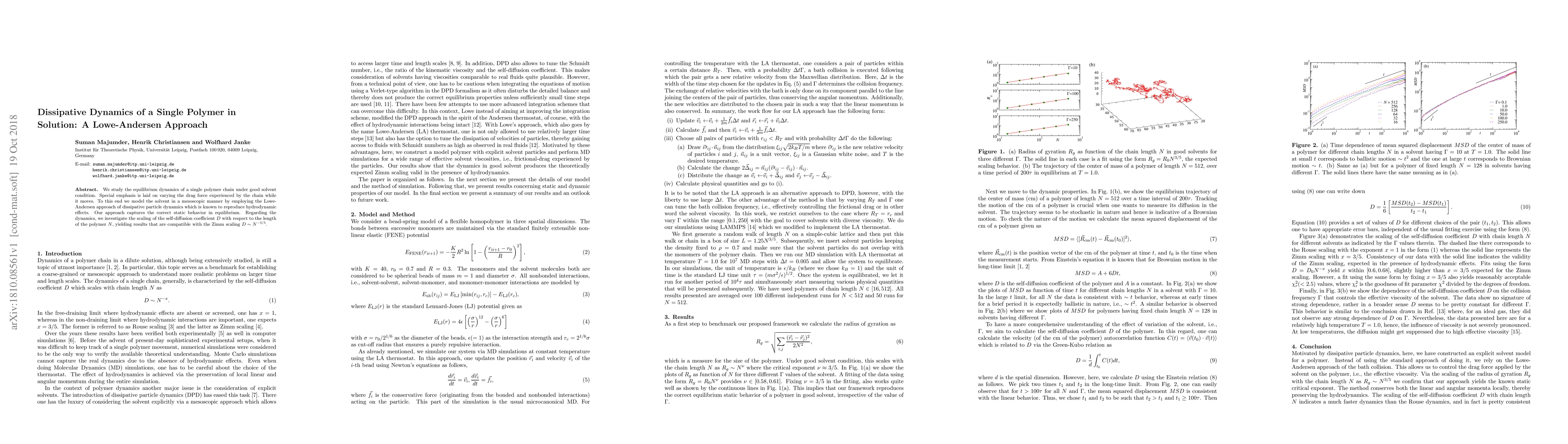 We study the equilibrium dynamics of a single polymer chain under good solvent condition. Special emphasis is laid on varying the drag force experienced by the chain while it moves. To this end we model the solvent in a mesoscopic manner by employing the Lowe-Andersen approach of dissipative particle dynamics which is known to reproduce hydrodynamic effects. Our approach captures the correct static behavior in equilibrium. Regarding the dynamics, we investigate the scaling of the self-diffusion coefficient $D$ with respect to the length of the polymer $N$, yielding results that are compatible with the Zimm scaling $D \sim N^{-3/5}$.