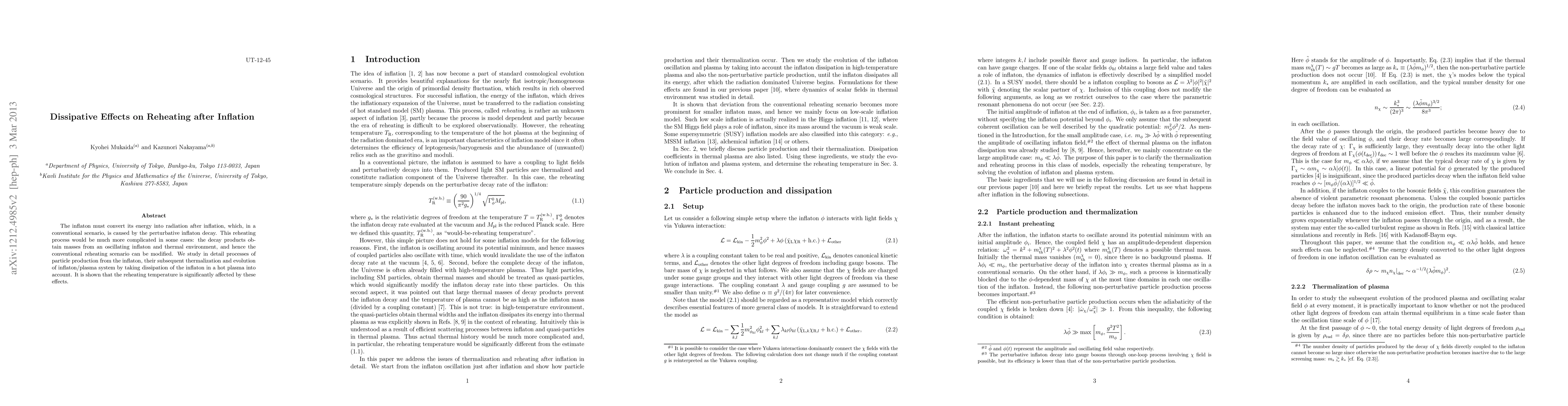This paper investigates the complex reheating process after inflation, where the inflaton's energy converts into radiation, focusing on the impact of dissipative effects in a hot plasma. It demonstrates that these effects significantly alter the conventional reheating temperature.