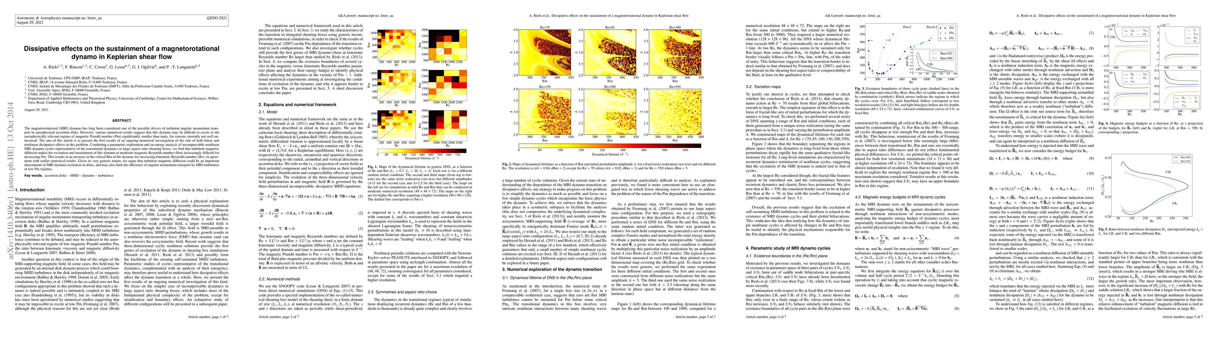 This paper investigates the impact of dissipative effects on the sustainment of magnetorotational dynamos in Keplerian shear flow, revealing that turbulent magnetic diffusion hinders dynamo excitation and sustainment, especially in regimes with low magnetic Prandtl numbers, thus potentially limiting angular momentum transport efficiency in astrophysical accretion disks.