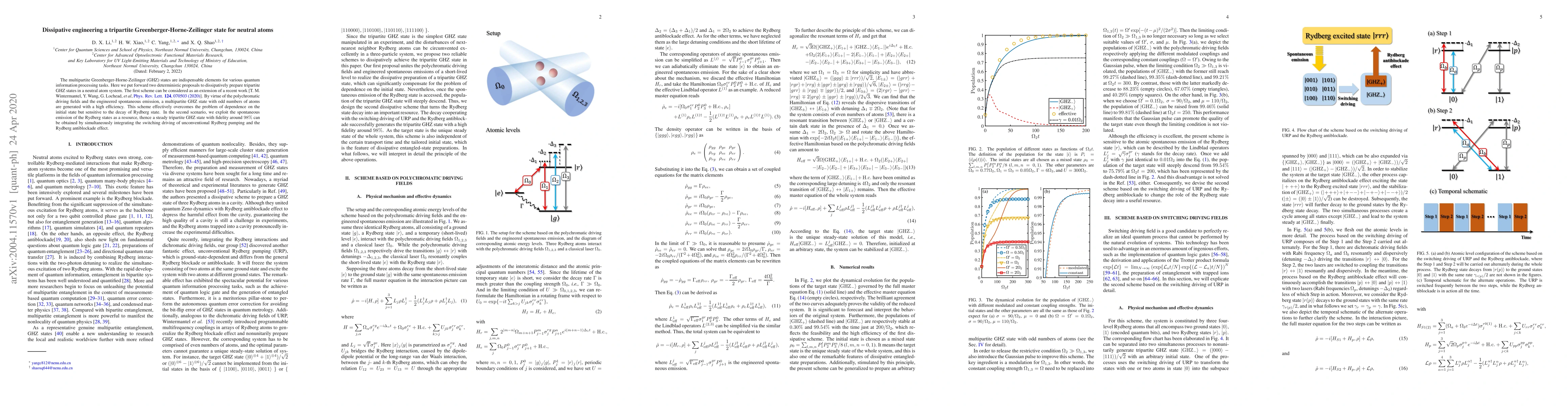 This paper proposes two methods for preparing tripartite Greenberger-Horne-Zeilinger (GHZ) states in a neutral atom system using dissipative engineering. The first method extends a previous work, generating GHZ states with high efficiency but sensitivity to Rydberg state decay. The second method utilizes spontaneous emission and unconventional Rydberg pumping to achieve a steady GHZ state with high fidelity.