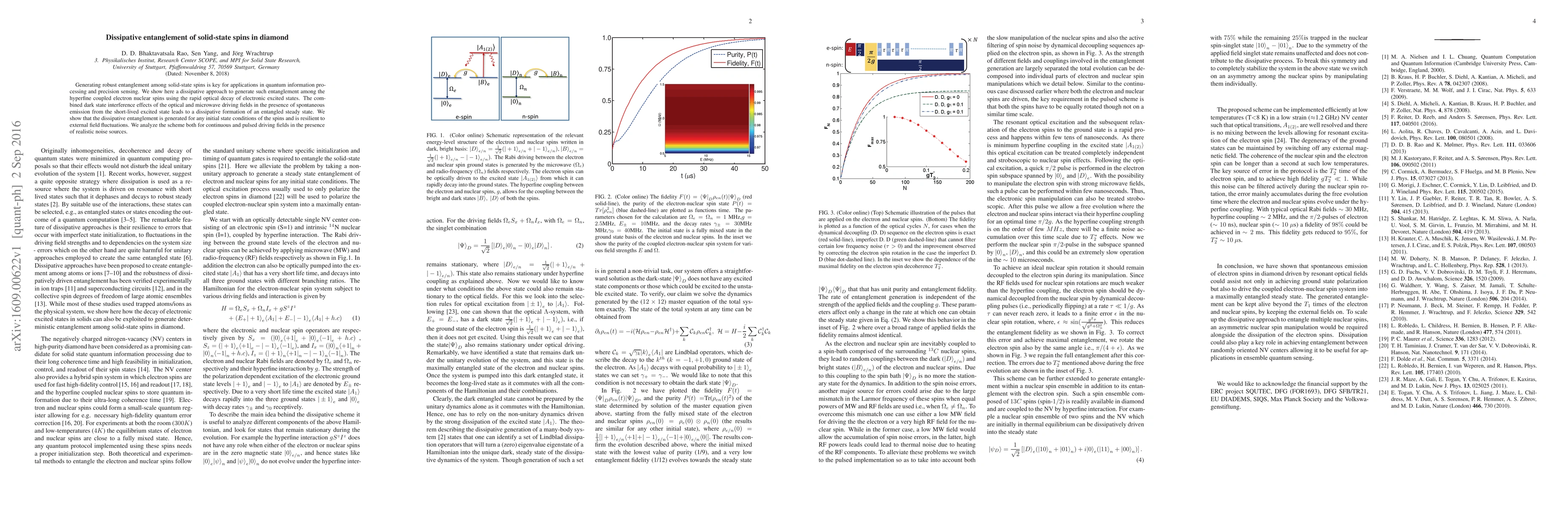 This paper presents a method for generating robust entanglement among solid-state spins in diamond using a dissipative approach, leveraging the rapid optical decay of electronic excited states. The scheme is resilient to initial state conditions and external field fluctuations, and is analyzed under both continuous and pulsed driving fields with realistic noise sources.