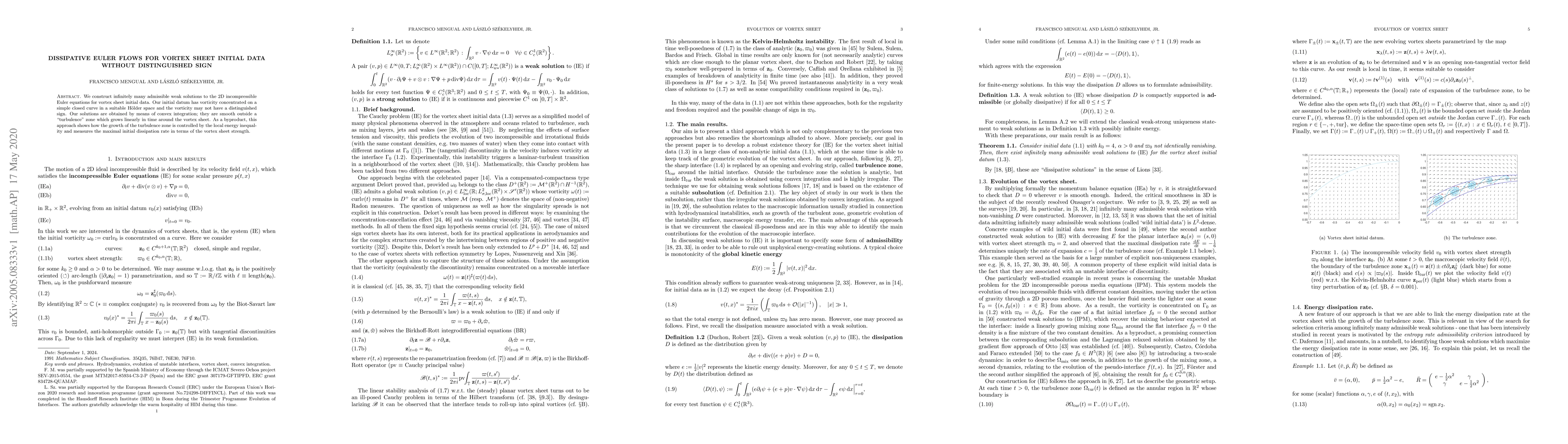 This paper constructs infinitely many weak solutions for the 2D incompressible Euler equations using convex integration, starting from vortex sheet initial data without a distinguished sign. The solutions are smooth outside a linearly growing turbulence zone, demonstrating control over turbulence growth via the local energy inequality.