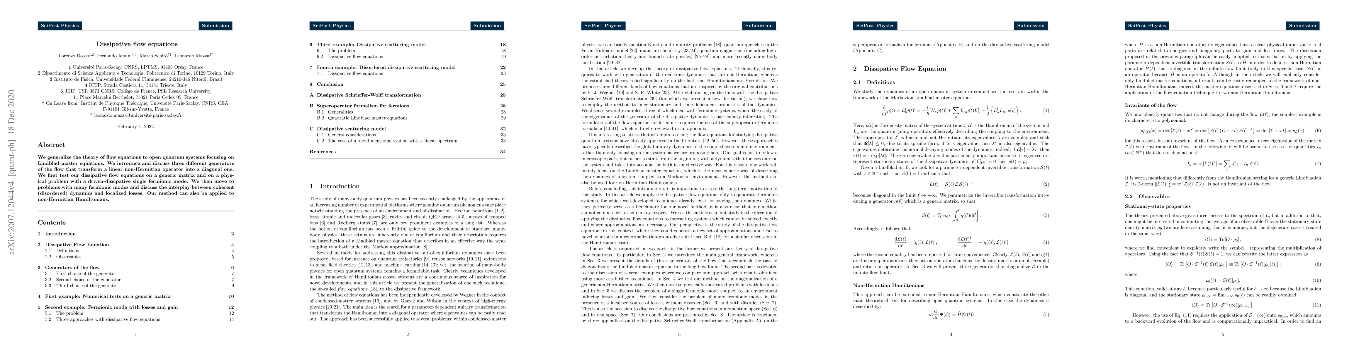 This paper introduces dissipative flow equations for open quantum systems, providing a new framework to study losses in quantum systems and their impact on coherent dynamics. It offers a general method to analyze driven-dissipative systems with multiple fermionic modes and has implications for non-Hermitian Hamiltonians.