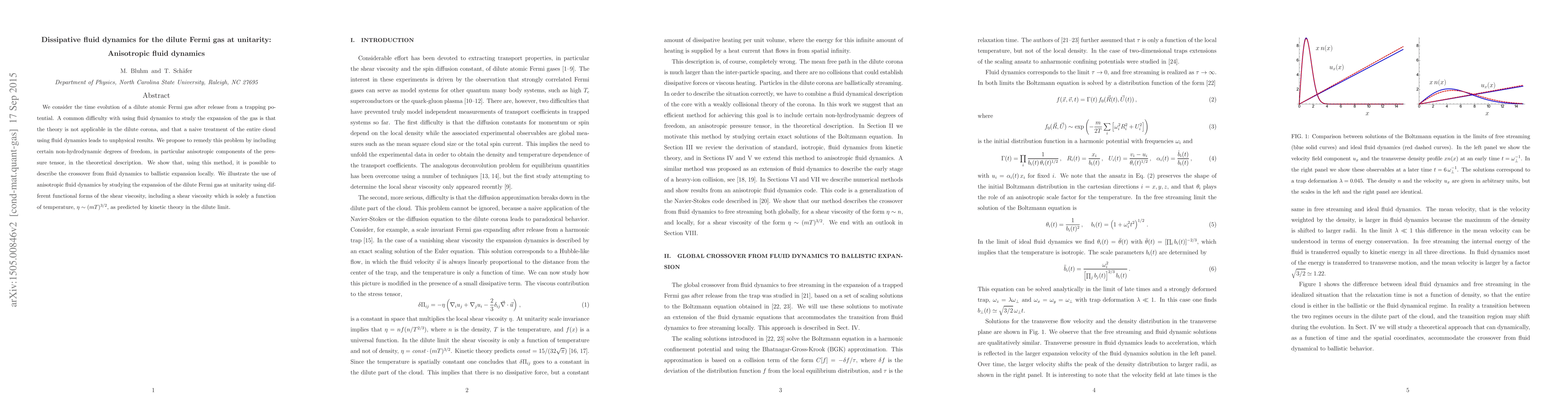 This paper proposes anisotropic fluid dynamics to describe the expansion of a dilute Fermi gas after release from a trapping potential, addressing the limitations of traditional fluid dynamics in the dilute corona. It demonstrates the method's ability to capture the transition from fluid dynamics to ballistic expansion and explores different forms of shear viscosity, including a temperature-dependent form predicted by kinetic theory.