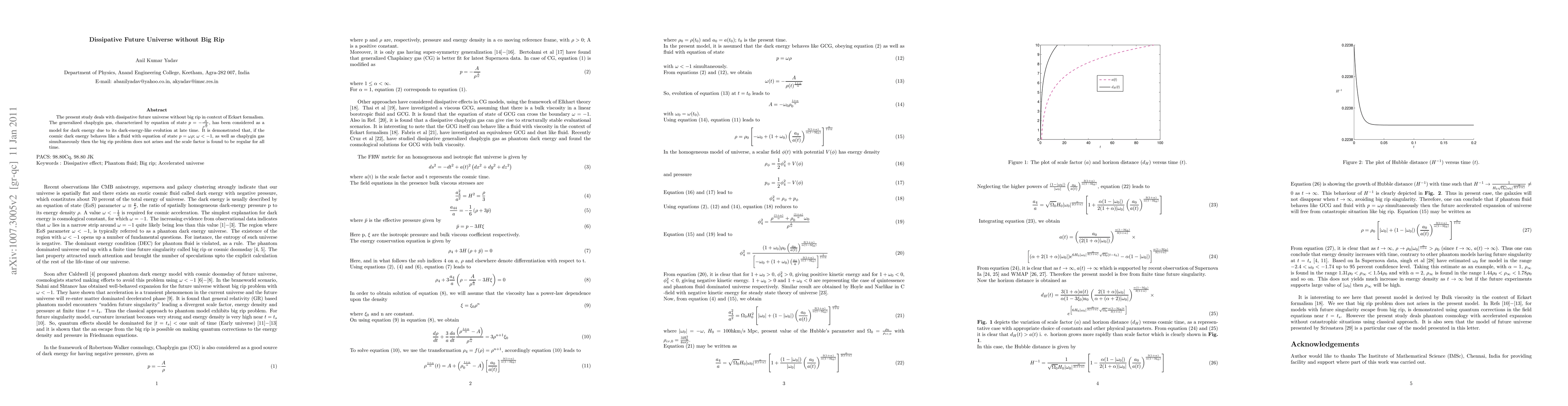 This research explores a dissipative future universe model using the Eckart formalism where the generalized Chaplygin gas, characterized by a specific equation of state, serves as a dark energy model. The study finds that if dark energy behaves as a fluid with a particular state equation, the big rip problem is avoided, and the universe's scale factor remains regular indefinitely.