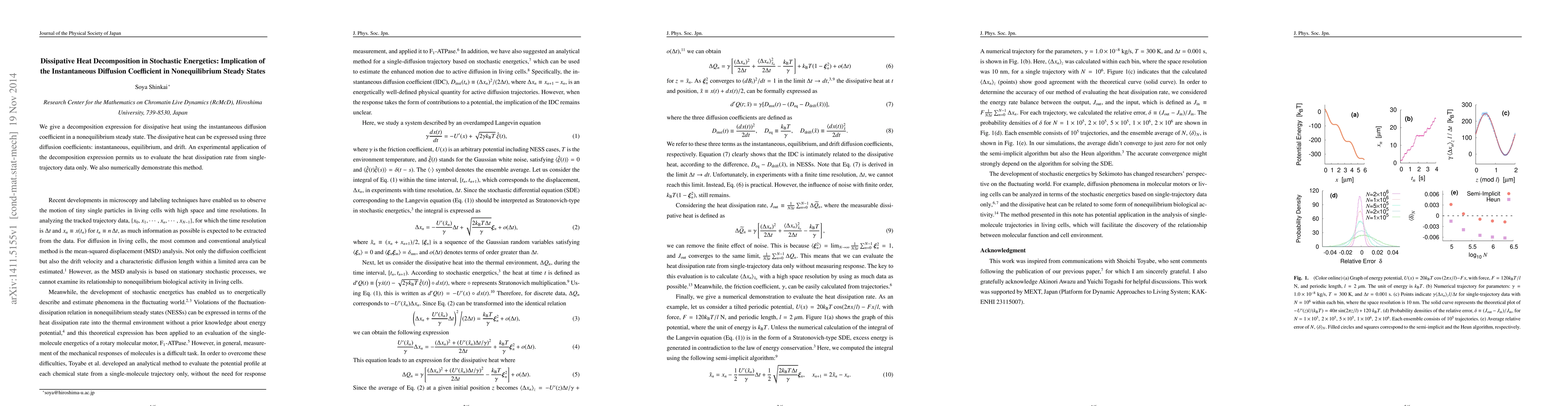 This paper presents a decomposition of dissipative heat in nonequilibrium steady states using the instantaneous diffusion coefficient, expressed through three diffusion coefficients: instantaneous, equilibrium, and drift. The method allows for evaluating heat dissipation rates from single-trajectory data, validated through both experimental application and numerical demonstration.