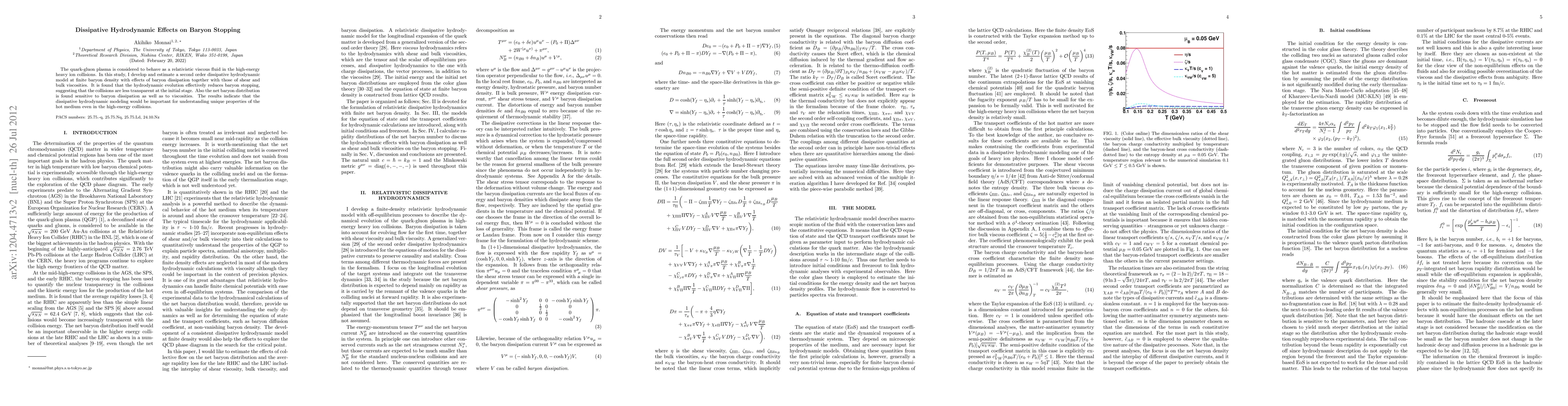 This study develops a second-order dissipative hydrodynamic model to analyze baryon stopping in quark-gluon plasma, revealing that hydrodynamic effects reduce baryon stopping and make collisions less transparent initially. The findings highlight the importance of dissipative modeling for understanding the properties of the hot medium in high-energy collisions.