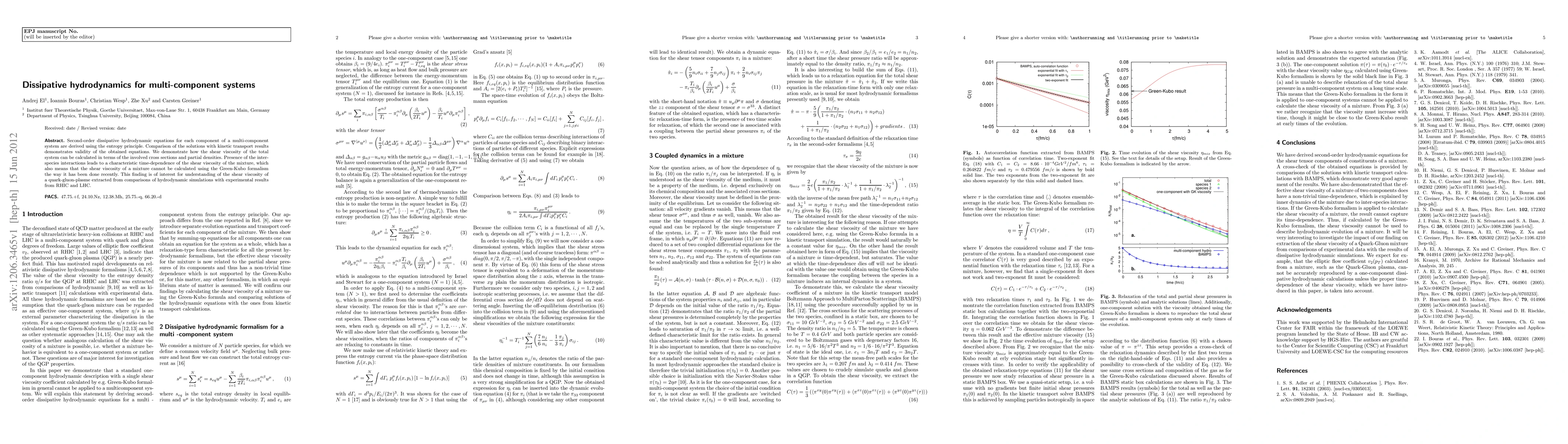 This paper derives second-order dissipative hydrodynamic equations for multi-component systems using the entropy principle, showing their validity through kinetic transport comparisons. It reveals that inter-species interactions cause a time-dependent shear viscosity, invalidating the Green-Kubo formalism for calculating it, thus impacting the understanding of quark-gluon plasma viscosity.
