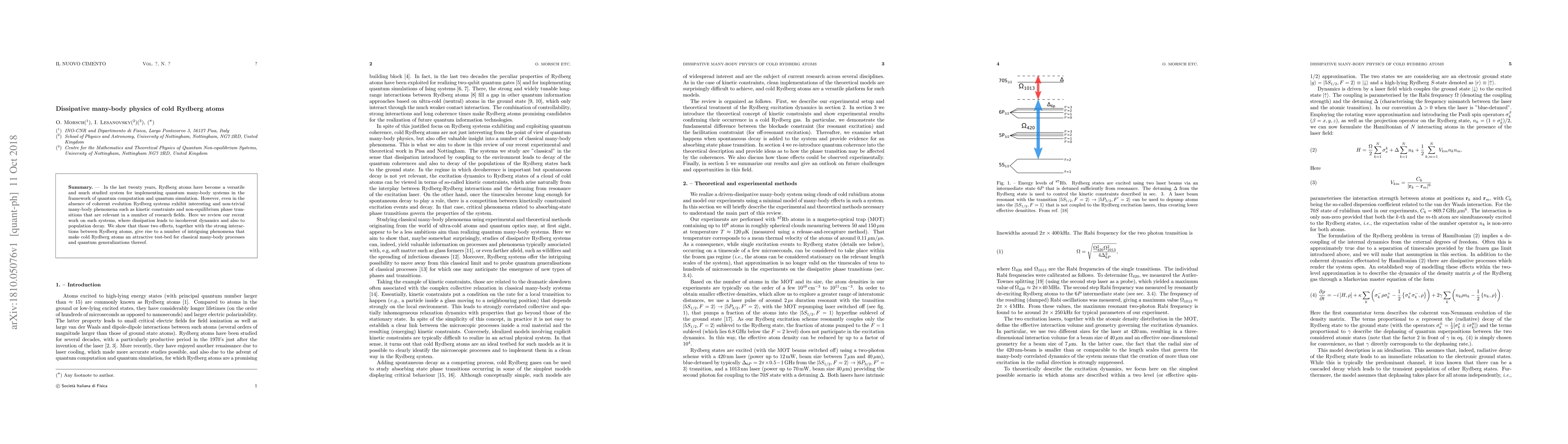 This paper reviews the non-trivial many-body phenomena exhibited by cold Rydberg atoms, including kinetic constraints and non-equilibrium phase transitions. The authors focus on how dissipation and population decay, alongside strong interactions, lead to intriguing classical and quantum many-body dynamics.