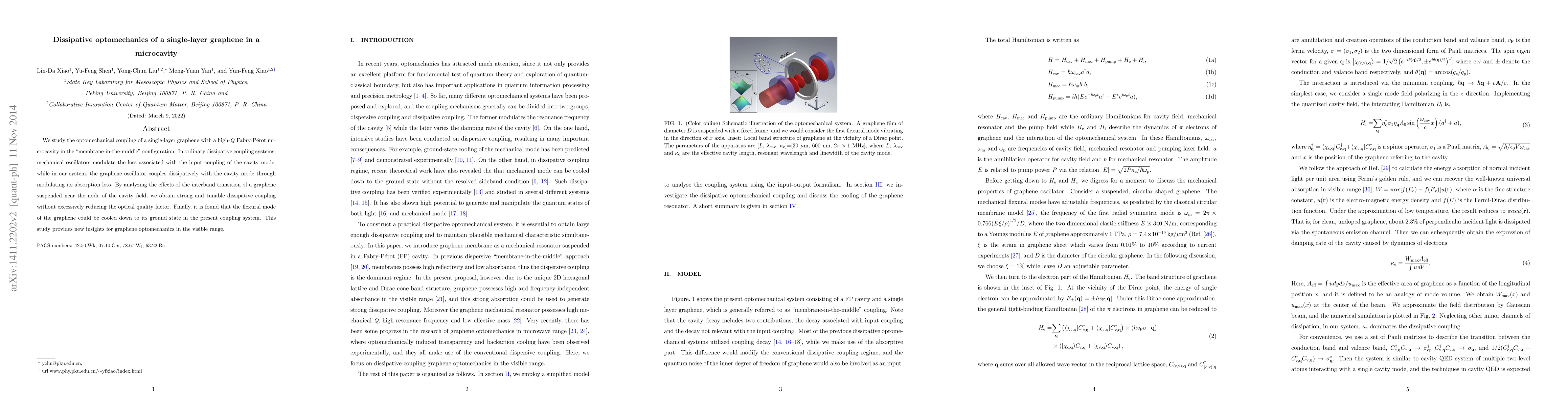 This paper investigates the optomechanical coupling of single-layer graphene in a high-Q microcavity, demonstrating strong and tunable dissipative coupling by modulating the graphene's absorption loss. The study reveals that the flexural mode of graphene can be cooled to its ground state, offering new insights into graphene optomechanics in the visible range.