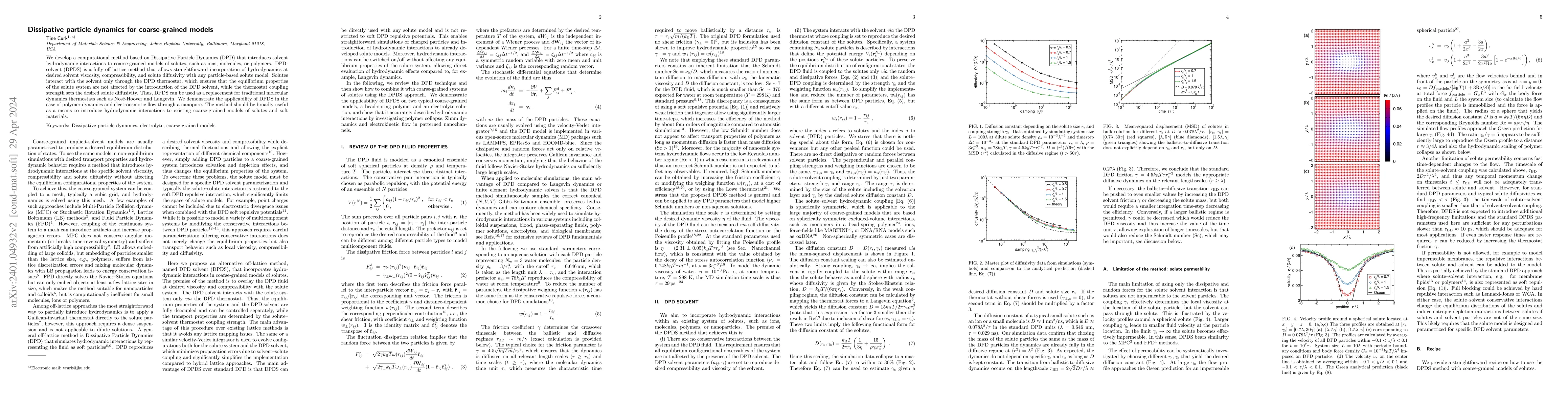 This paper develops a Dissipative Particle Dynamics (DPD) method, termed DPD-solvent (DPDS), for incorporating hydrodynamic interactions into coarse-grained models, demonstrating its application to polymer dynamics and electroosmotic flow in nanopores. DPDS allows for solvent viscosity, compressibility, and solute diffusivity adjustments without affecting solute equilibrium properties, serving as an alternative to traditional molecular dynamics thermostats.