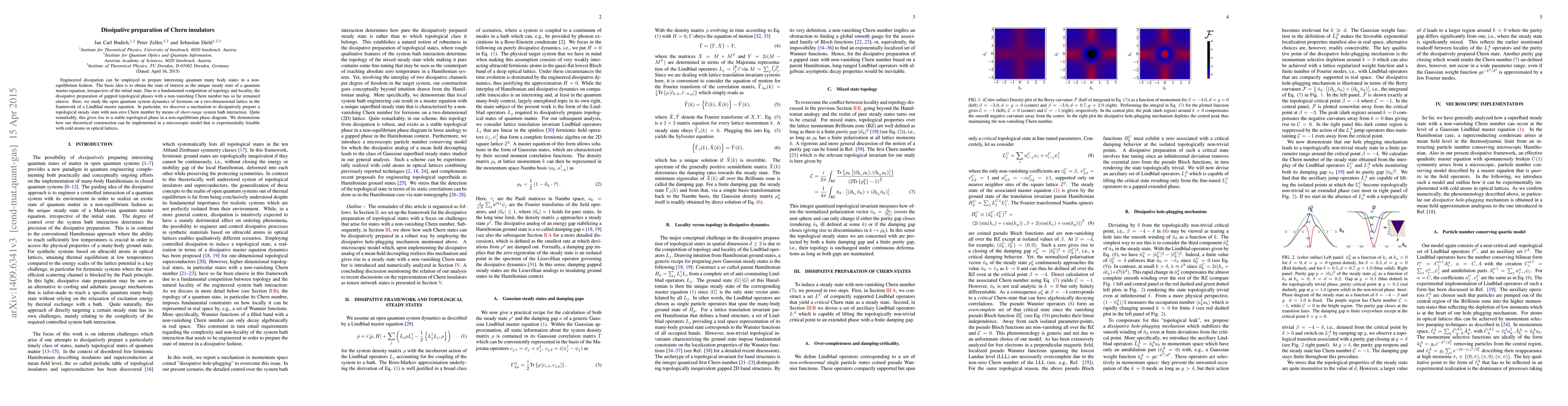 This paper explores the use of engineered dissipation to prepare topological steady states in quantum many-body systems, specifically focusing on Chern insulators. The authors propose a mechanism for achieving a stable topological phase with a non-zero Chern number through short-range interactions in an open quantum system, demonstrating its feasibility with cold atoms in optical lattices.
