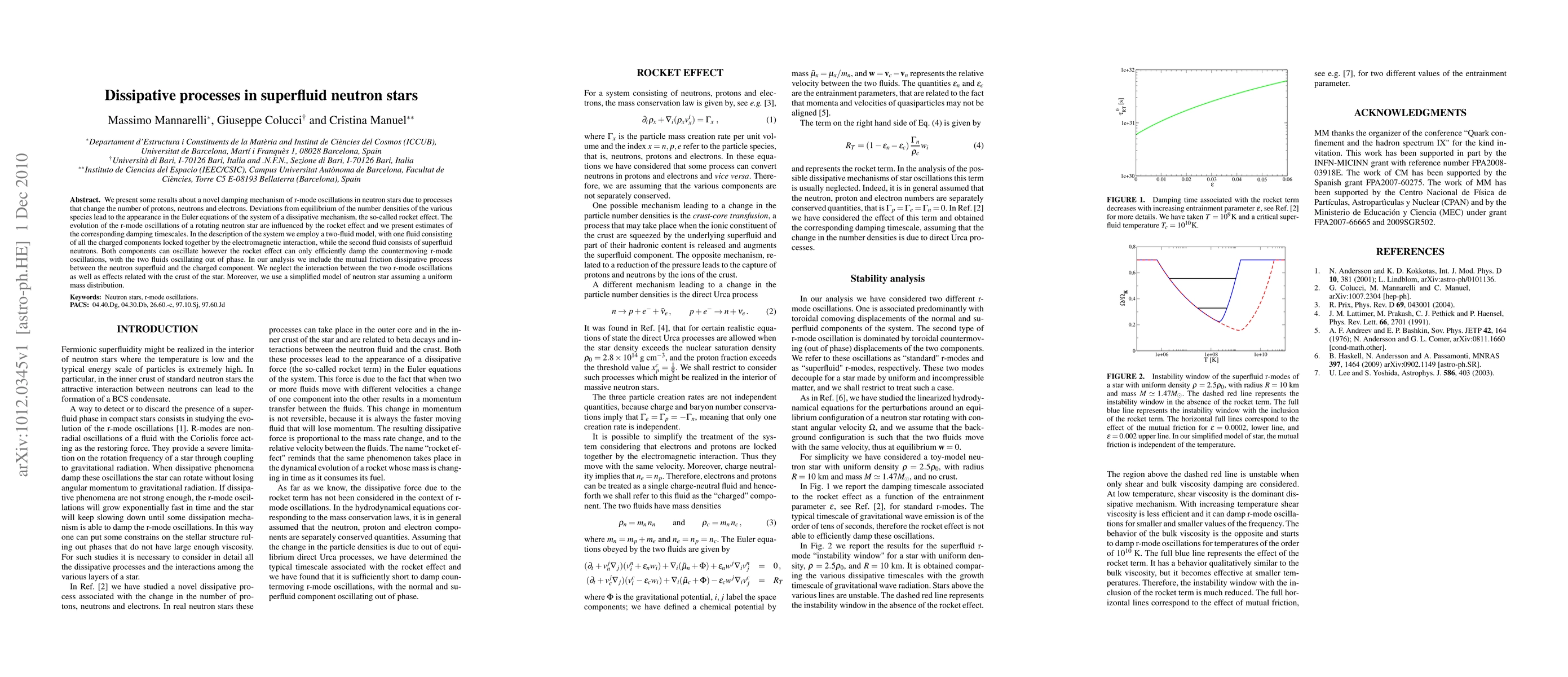We present some results about a novel damping mechanism of r-mode oscillations in neutron stars due to processes that change the number of protons, neutrons and electrons. Deviations from equilibrium of the number densities of the various species lead to the appearance in the Euler equations of the system of a dissipative mechanism, the so-called rocket effect. The evolution of the r-mode oscillations of a rotating neutron star are influenced by the rocket effect and we present estimates of the corresponding damping timescales. In the description of the system we employ a two-fluid model, with one fluid consisting of all the charged components locked together by the electromagnetic interaction, while the second fluid consists of superfluid neutrons. Both components can oscillate however the rocket effect can only efficiently damp the countermoving r-mode oscillations, with the two fluids oscillating out of phase. In our analysis we include the mutual friction dissipative process between the neutron superfluid and the charged component. We neglect the interaction between the two r-mode oscillations as well as effects related with the crust of the star. Moreover, we use a simplified model of neutron star assuming a uniform mass distribution.