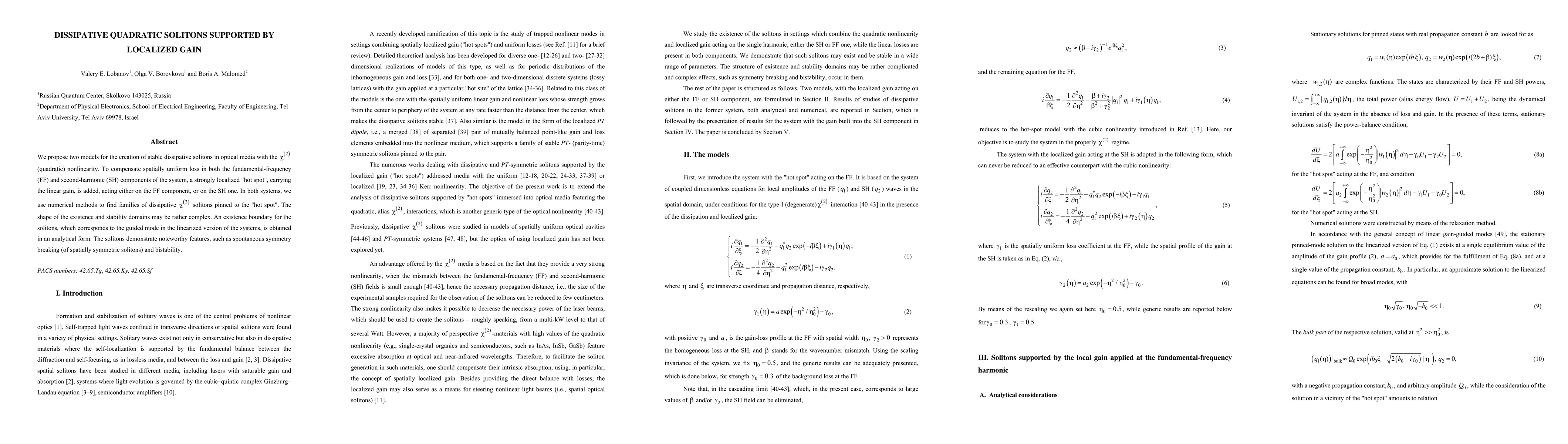 Boris A. Malomed, Valery E. Lobanov, Olga V. Borovkova et al.