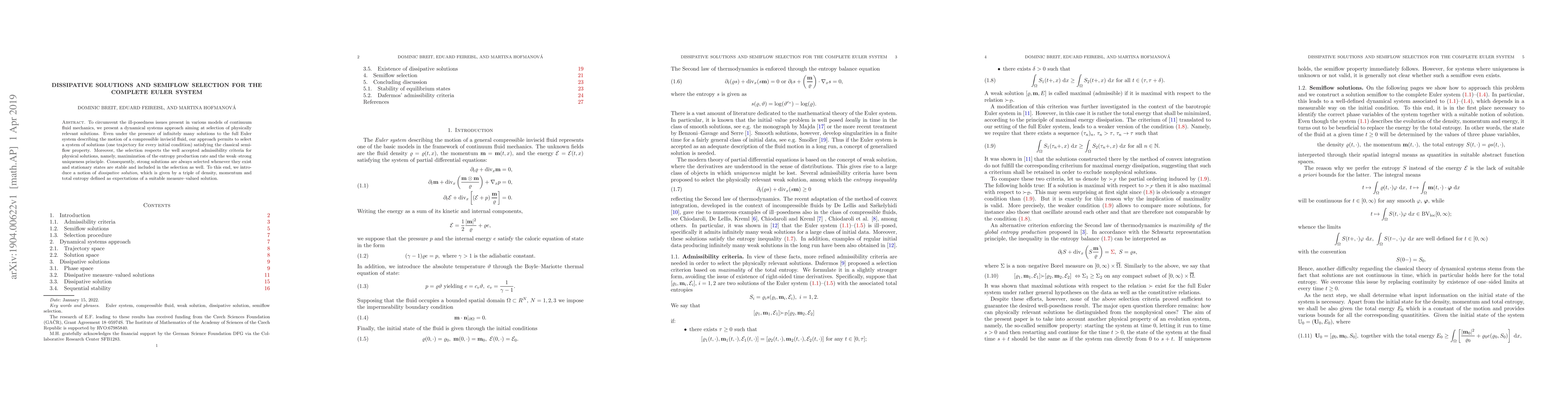 This paper proposes a dynamical systems approach to select physically relevant solutions for the Euler system, addressing ill-posedness issues in continuum fluid mechanics. It introduces dissipative solutions that maximize entropy production and adhere to the semiflow property, ensuring strong solutions and stability of stationary states are always included.