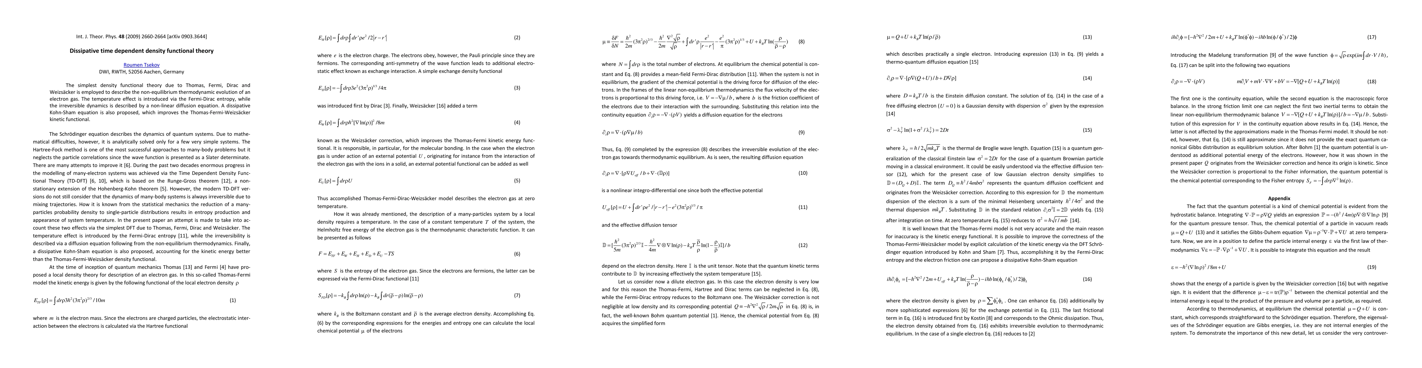 A new density functional theory is proposed to describe non-equilibrium thermodynamic evolution of an electron gas, incorporating temperature effects via Fermi-Dirac entropy and nonlinear diffusion equations.