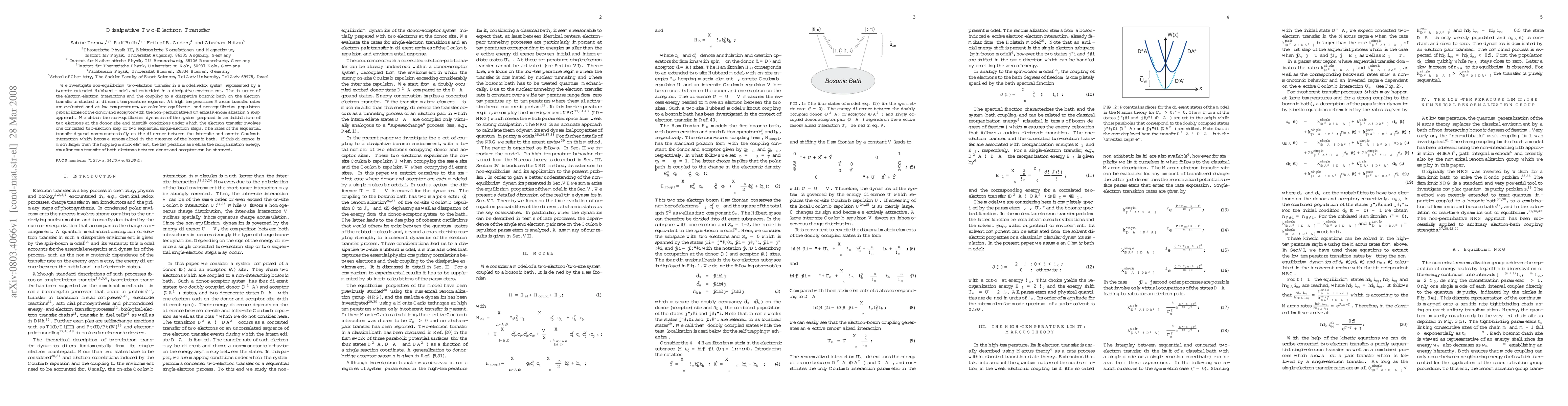 We investigate non-equilibrium two-electron transfer in a model redox system represented by a two-site extended Hubbard model and embedded in a dissipative environment. The influence of the electron-electron interactions and the coupling to a dissipative bosonic bath on the electron transfer is studied in different temperature regimes. At high temperatures Marcus transfer rates are evaluated and at low temperatures, we calculate equilibrium and non-equilibrium population probabilities of the donor and acceptor with the non-perturbative Numerical Renormalization Group approach. We obtain the non-equilibrium dynamics of the system prepared in an initial state of two electrons at the donor site and identify conditions under which the electron transfer involves one concerted two-electron step or two sequential single-electron steps. The rates of the sequential transfer depend non-monotonically on the difference between the inter-site and on-site Coulomb interaction which become renormalized in the presence of the bosonic bath. If this difference is much larger than the hopping matrix element, the temperature as well as the reorganization energy, simultaneous transfer of both electrons between donor and acceptor can be observed.