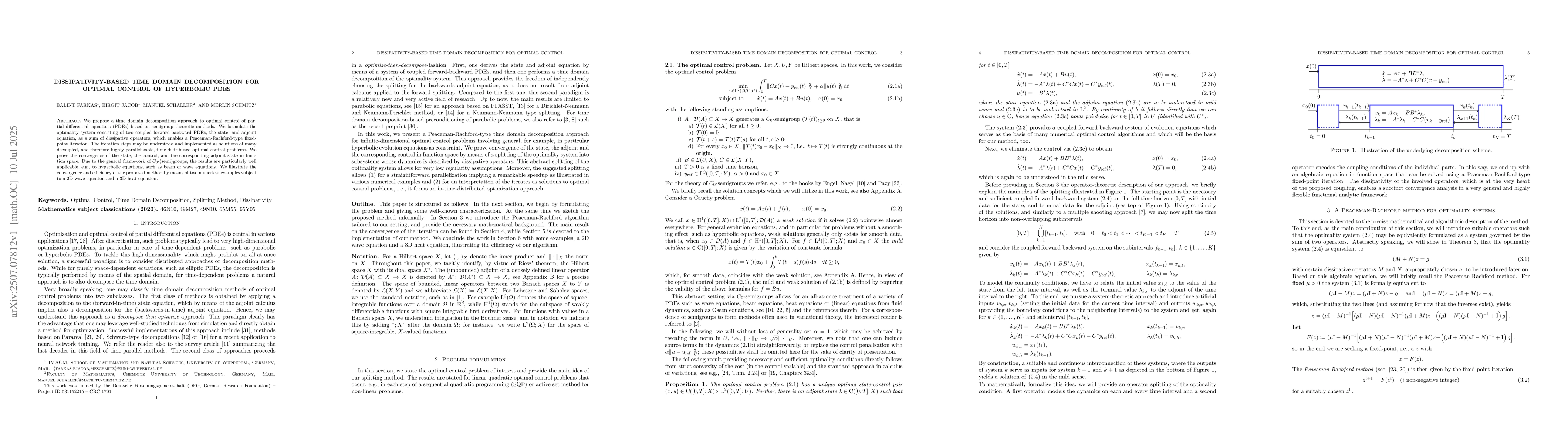 We propose a time domain decomposition approach to optimal control of partial differential equations (PDEs) based on semigroup theoretic methods. We formulate the optimality system consisting of two coupled forward-backward PDEs, the state and adjoint equation, as a sum of dissipative operators, which enables a Peaceman-Rachford-type fixed-point iteration. The iteration steps may be understood and implemented as solutions of many decoupled, and therefore highly parallelizable, time-distributed optimal control problems. We prove the convergence of the state, the control, and the corresponding adjoint state in function space. Due to the general framework of $C_0$-(semi)groups, the results are particularly well applicable, e.g., to hyperbolic equations, such as beam or wave equations. We illustrate the convergence and efficiency of the proposed method by means of two numerical examples subject to a 2D wave equation and a 3D heat equation.