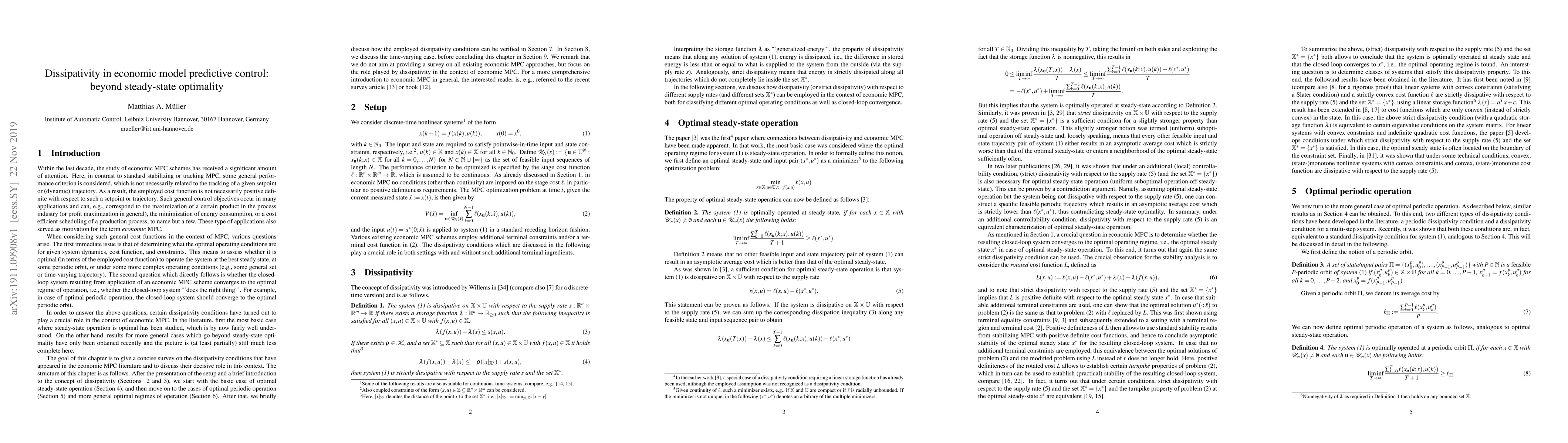 Summary: This paper surveys various dissipativity conditions in economic model predictive control, emphasizing their importance beyond mere steady-state optimality in achieving robust and efficient control strategies.