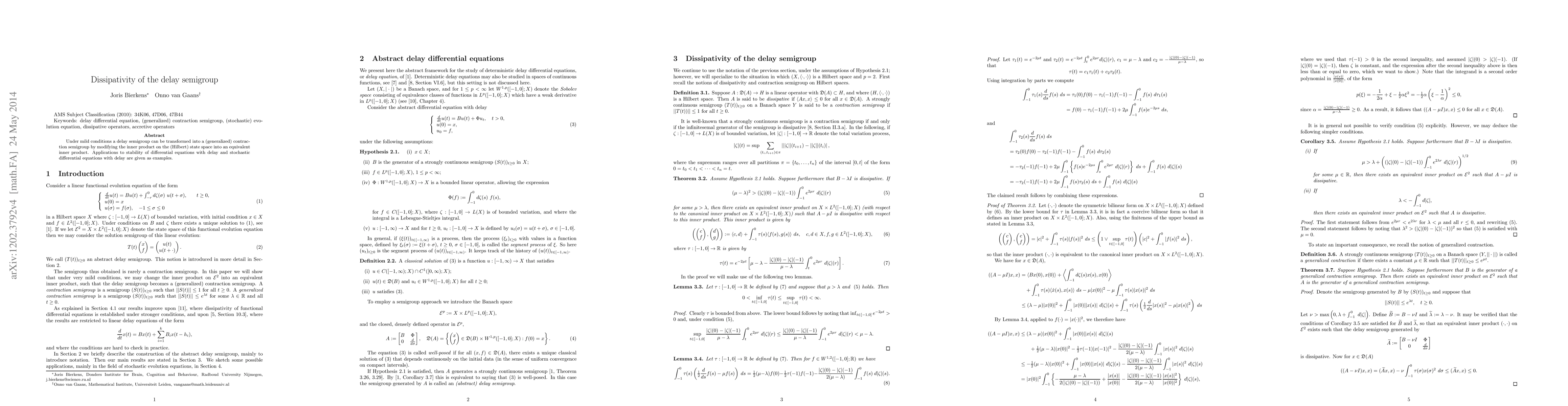 Researchers found that a delay semigroup can be transformed into a generalized contraction semigroup by modifying its inner product, with implications for stability analysis of differential equations with delay and stochastic differential equations.