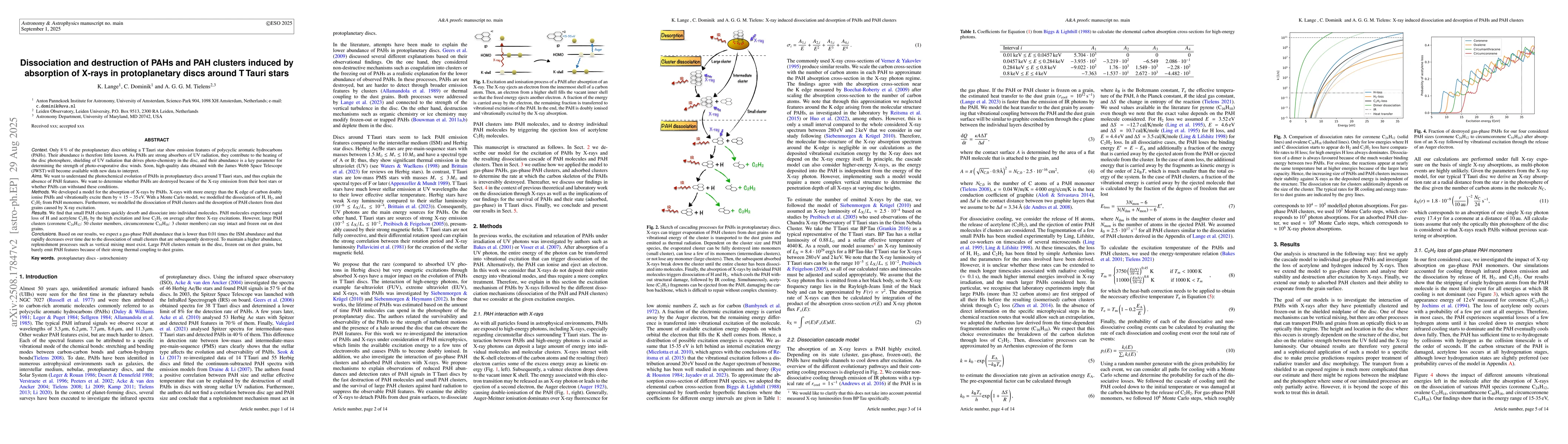 Only 8% of the protoplanetary discs orbiting a T Tauri star show emission features of polycyclic aromatic hydrocarbons (PAHs). As PAHs are strong absorbers of UV radiation, they contribute to the heating of the discs photosphere, shielding of UV radiation that drives photo-chemistry in the disc, and their abundance is a key parameter to determine the strength of photo-evaporative disc winds. We want to understand the photochemical evolution of PAHs in protoplanetary discs around T Tauri stars and thus explain the absence of PAH features. We want to determine whether PAHs are destroyed because of the X-ray emission from their host stars or whether PAHs can withstand these conditions. We developed a model for the absorption of X-rays by PAHs. X-rays with more energy than the K edge of carbon will double ionise PAHs and will vibrationally excite them by ~ 15-35 eV. With a Monte Carlo model, we modelled the dissociation of H, H2, and C2H2 from PAH monomers. Furthermore, we modelled the dissociation of PAH clusters and the desorption of PAH clusters from dust grains caused by X-ray excitation. We find that small PAH clusters will quickly desorb and dissociate into individual molecules. PAH molecules experience rapid loss of H and acetylene C2H2 by the high excitation and will lose C2H2 on average after three X-ray excitations. However, large PAH clusters can stay intact and frozen out on dust grains. Based on our results, we expect a gas-phase PAH abundance that is lower than 0.01 times the ISM abundance and will rapidly decrease over time due to the dissociation of small clusters that are subsequently destroyed. To maintain a higher abundance, replenishment processes must exist such as vertical mixing. Large PAH clusters remain in the disc, frozen out on dust grains, but barely emit PAH features because of their strong thermal coupling to dust grains.