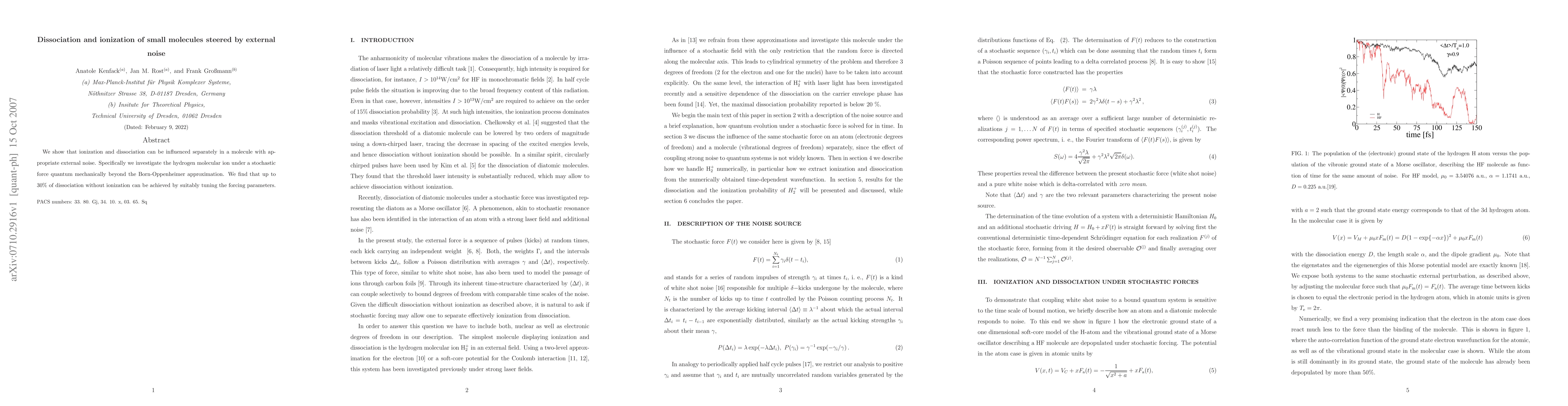 Researchers demonstrate that adding external noise to a molecule can influence both ionization and dissociation, with up to 30% of dissociation without ionization possible through precise tuning.